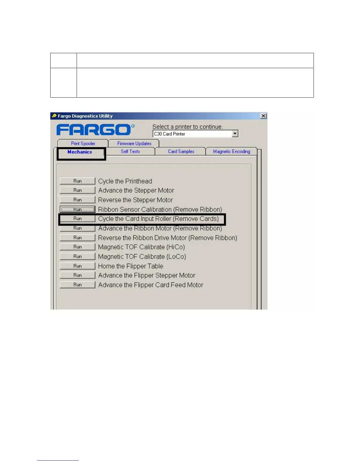 Click on the Cycle the Card Input Roller (Remove Cards) button to activate
