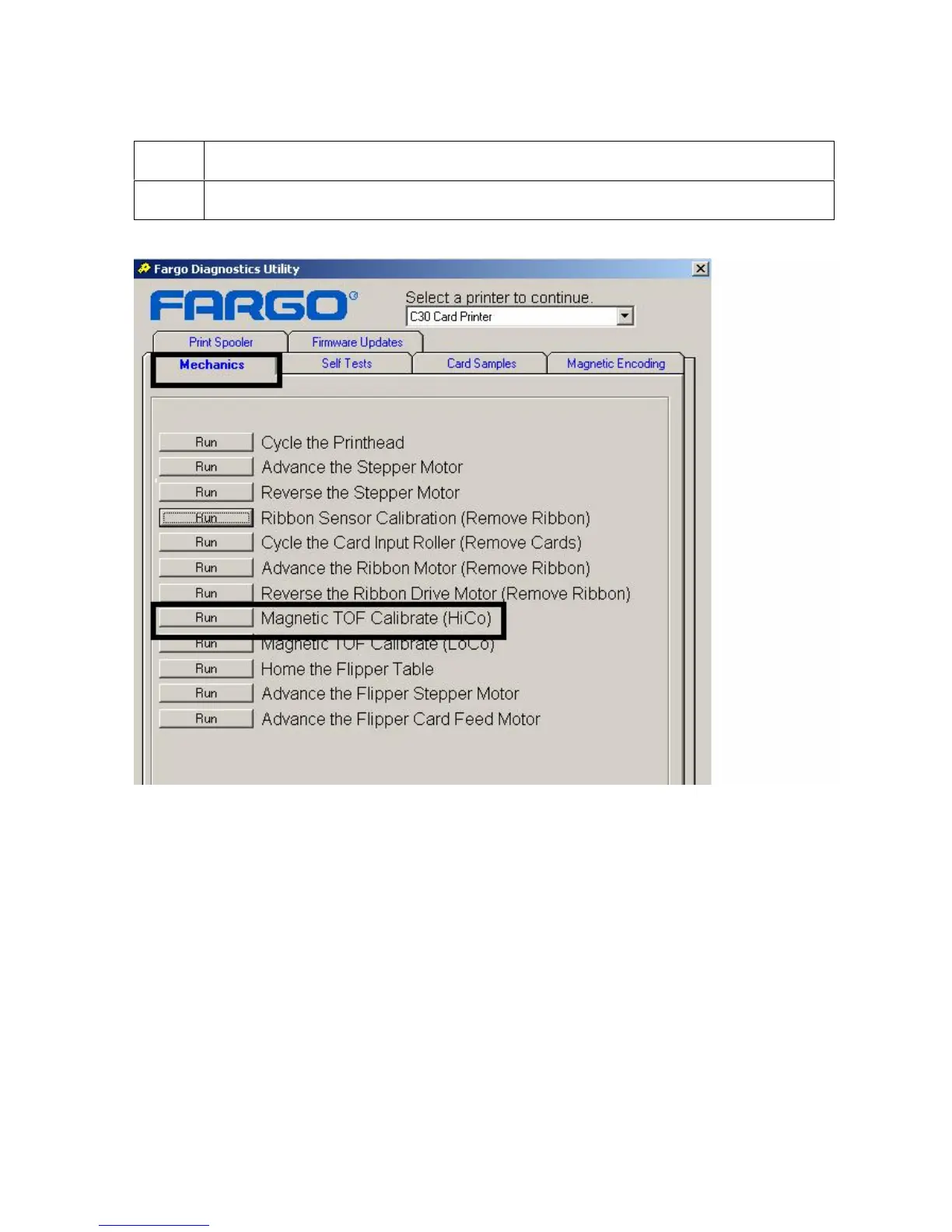 Selecting the Mechanics tab in the Diagnostics Utility (continued)