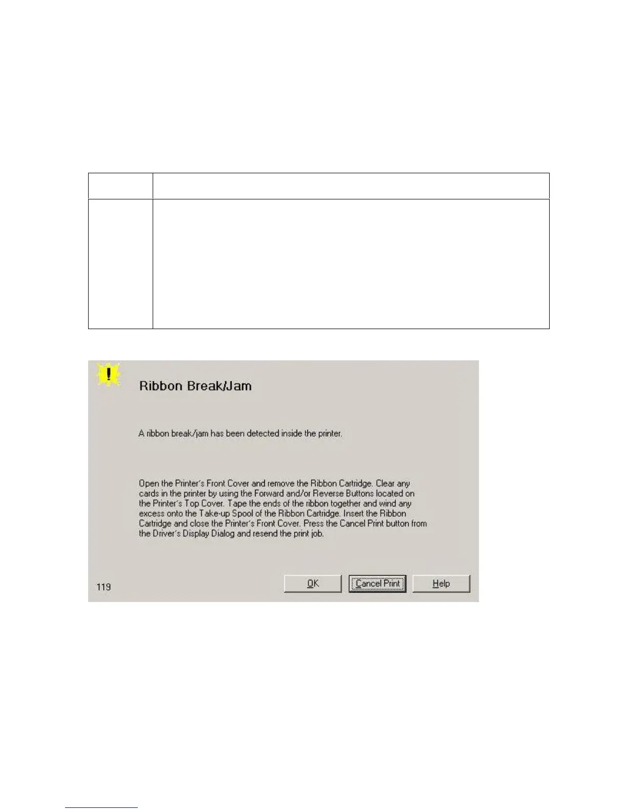 Driver Monitor Error Display: Ribbon BreakJam