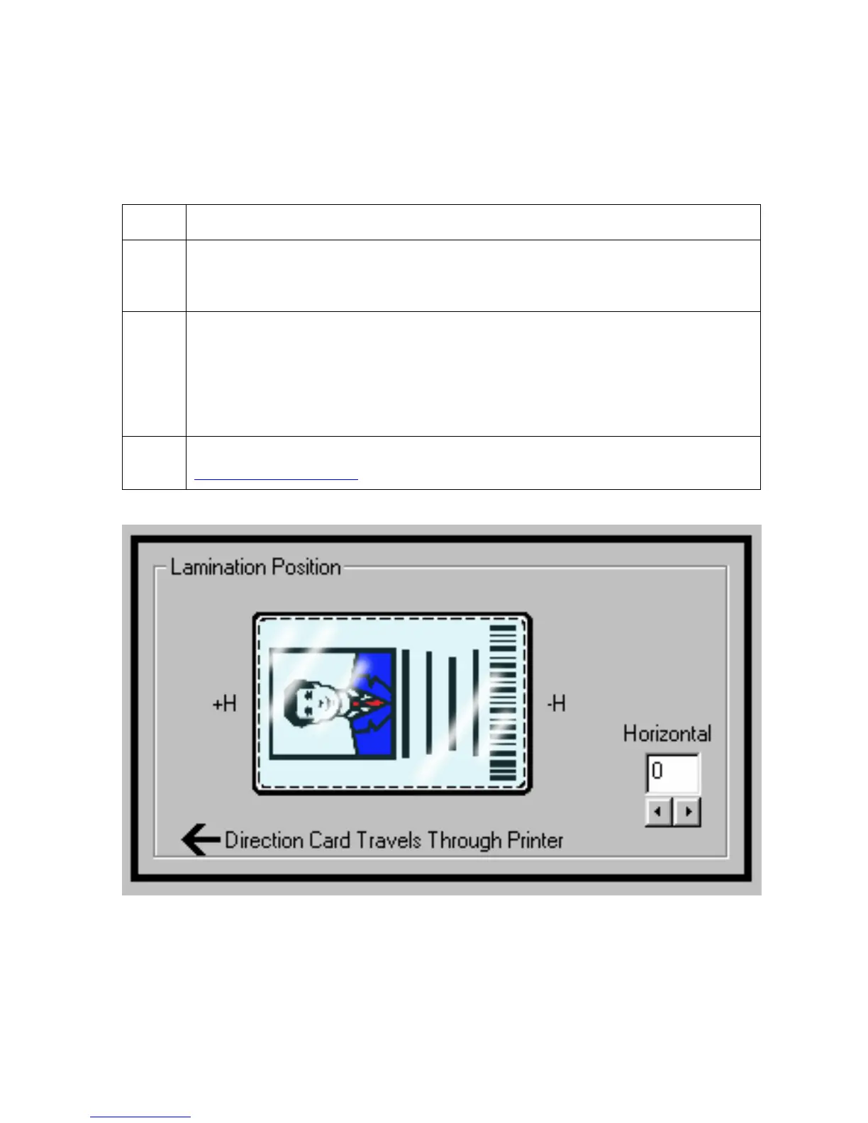 Click on the Horizontal Adjustment arrows to adjust the Lamination position.