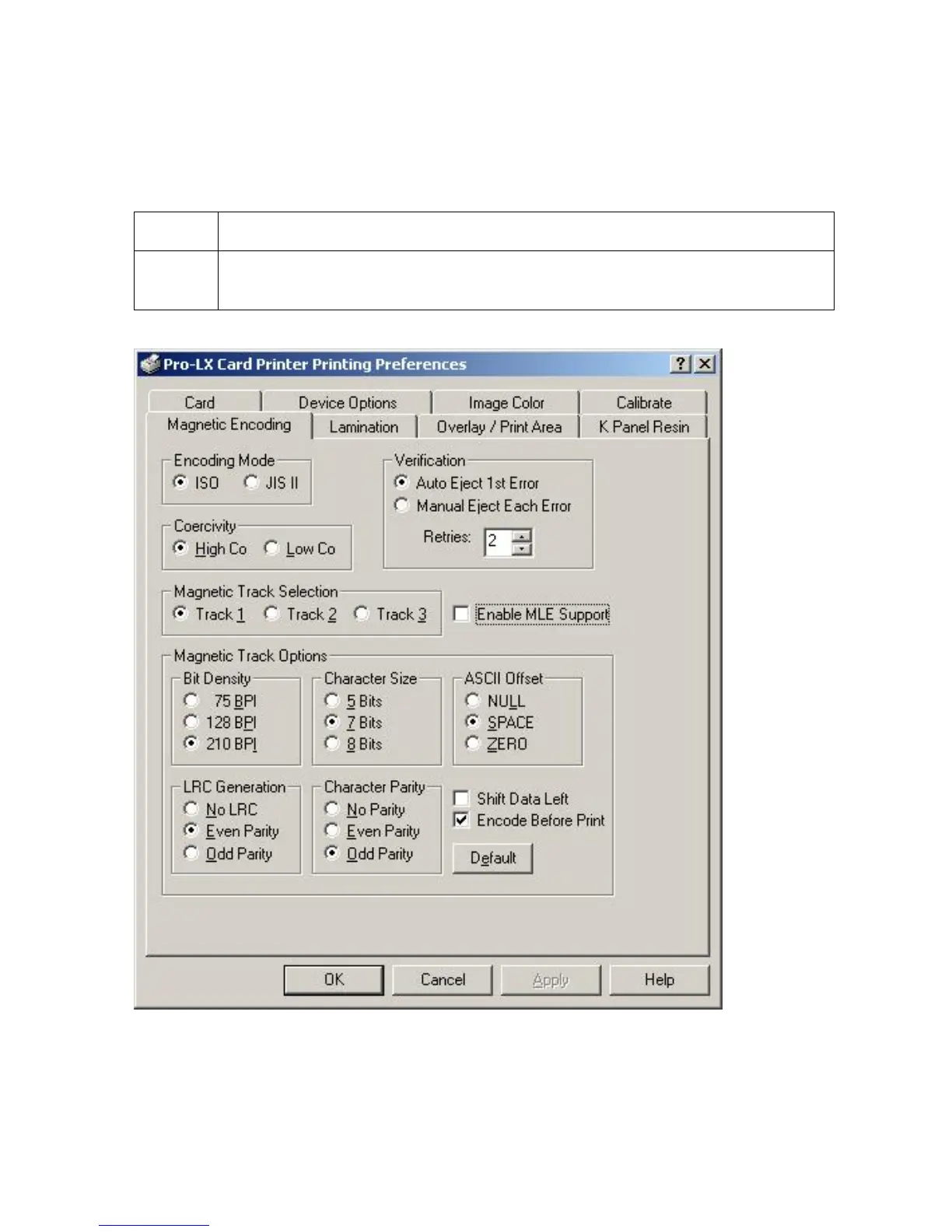 Use this option only if the Printer has an optional Magnetic Stripe Encoding Module installed.
