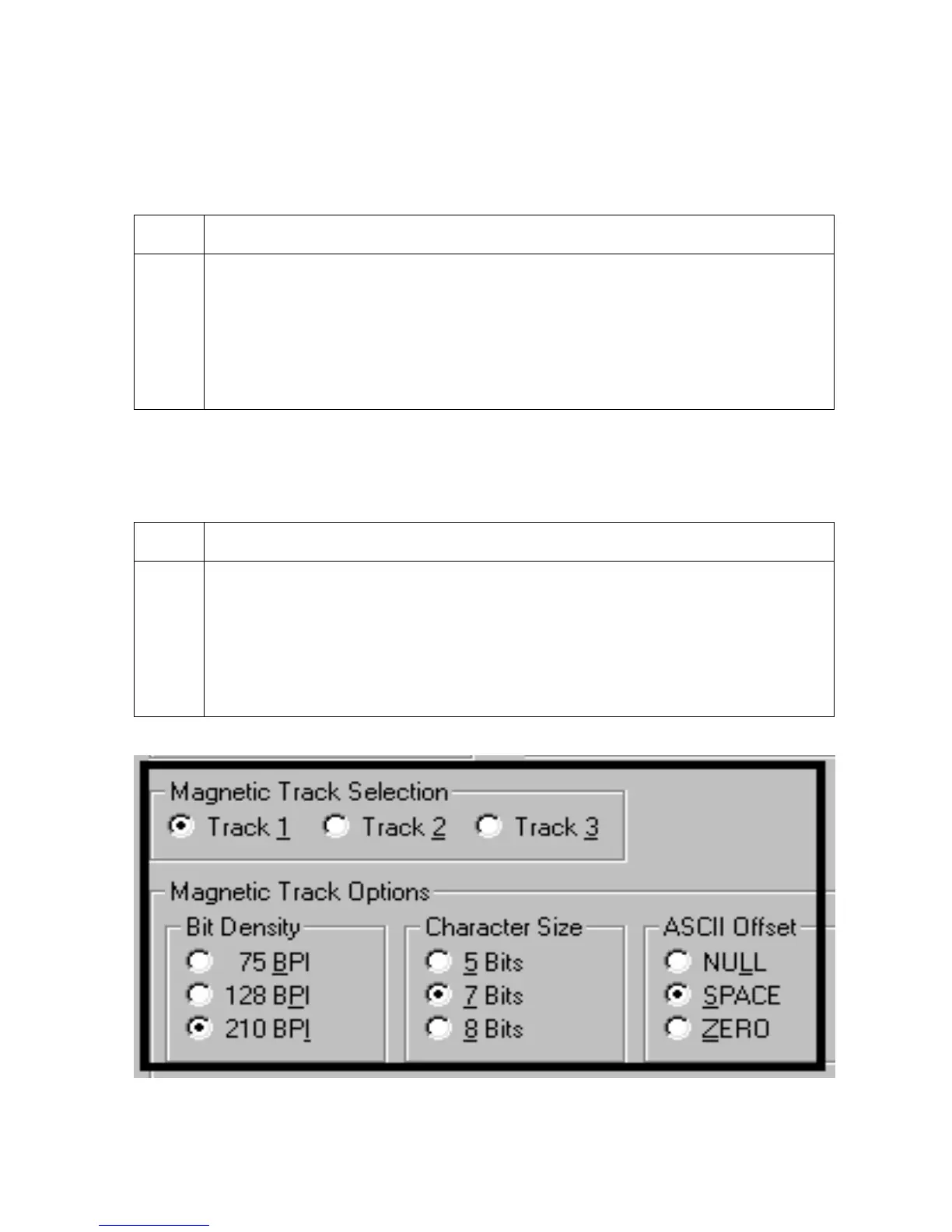 magnetic data on the currently selected Track. The default ISO Standard selections for this
