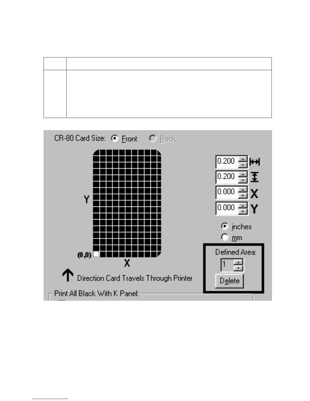 Click on the Defined Area(s) check box. (Note: This will activate the card grid