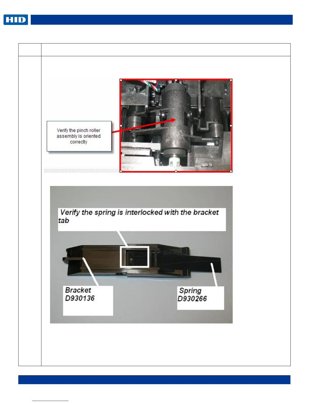 a. Verify orientation of the Pinch Roller Assembly