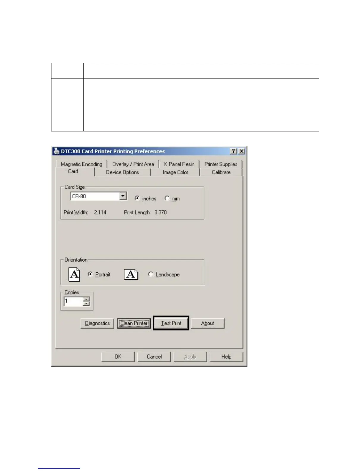 Click on the Test Print button to send a simple self-test print to the Printer.