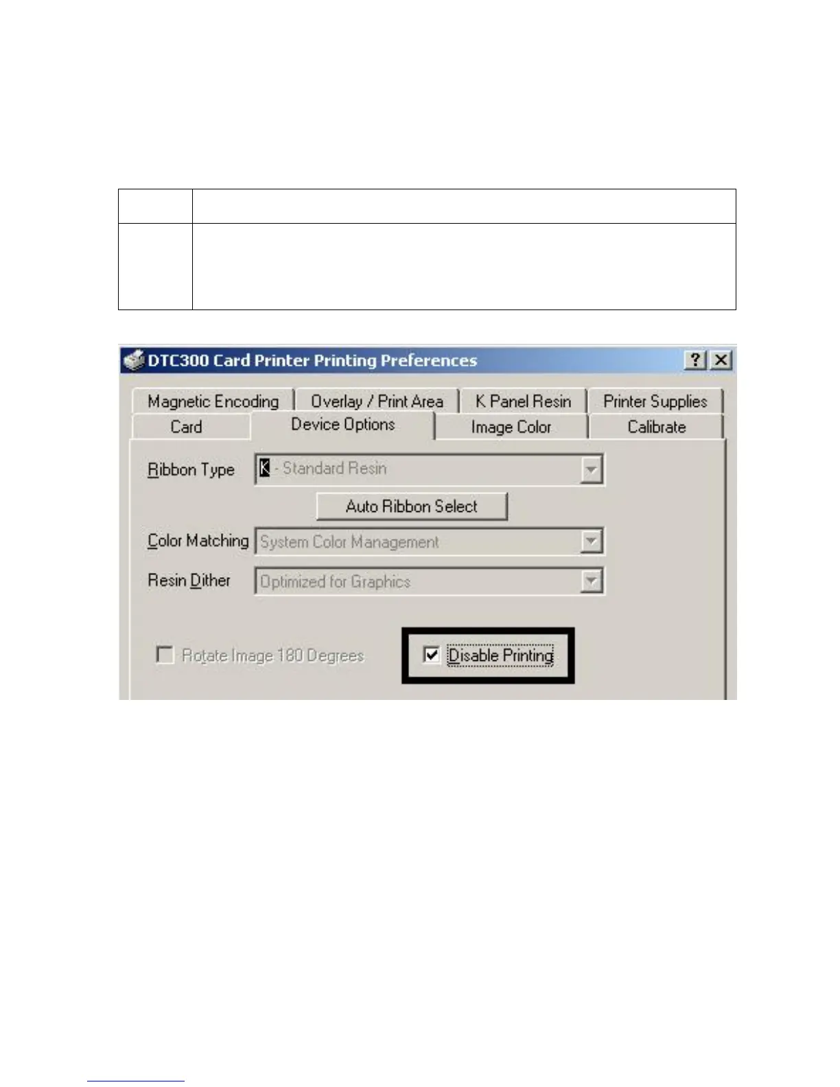 Using the Disable Printing option