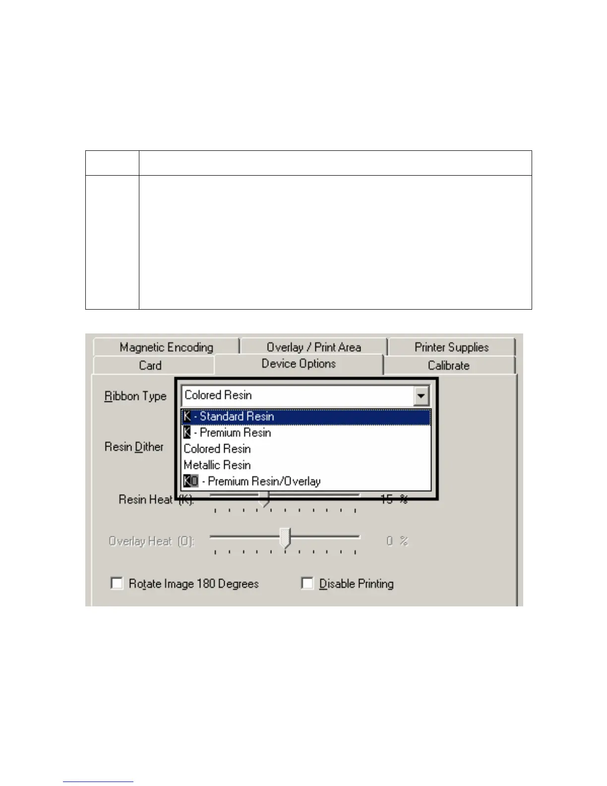 Select the appropriate print Ribbon Type option from the dropdown menu for