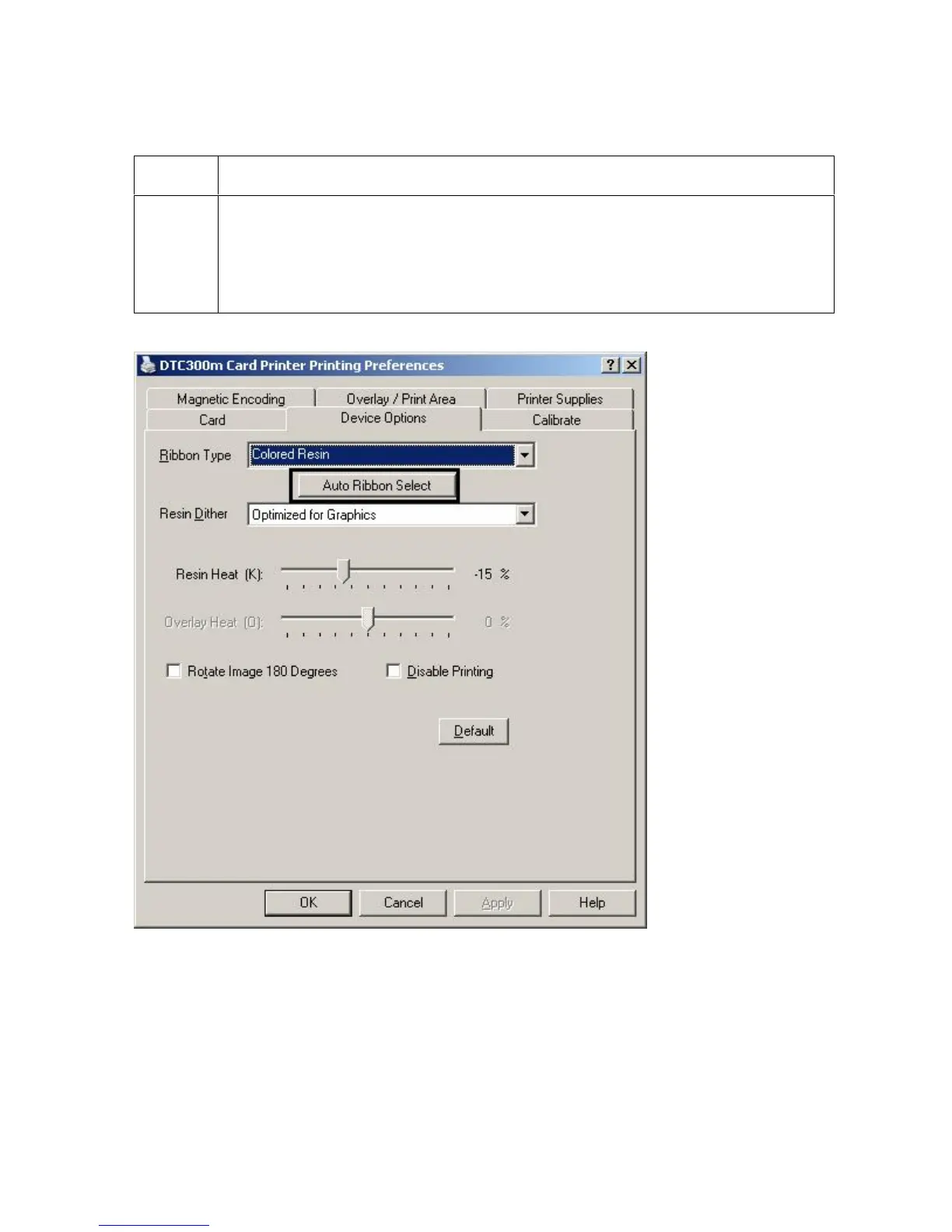 matches the Ribbon installed in the Printer. (Note: The Printer Driver will