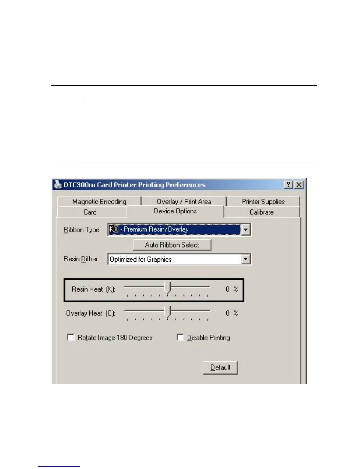 black panel(s) of a full-color Ribbon or when printing with a resin-only Ribbon by adjusting