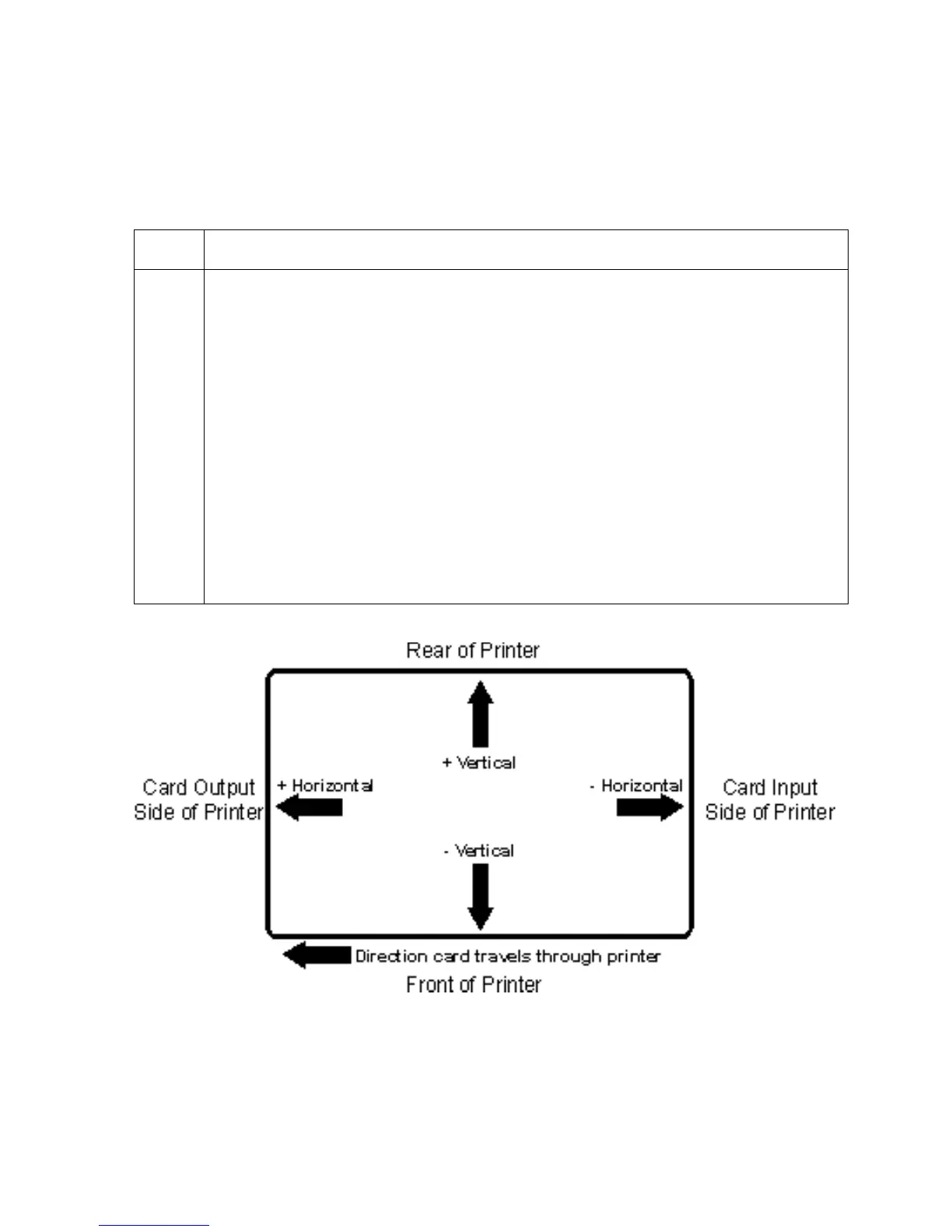Move toward the card output side of the Printer if a positive number is entered.