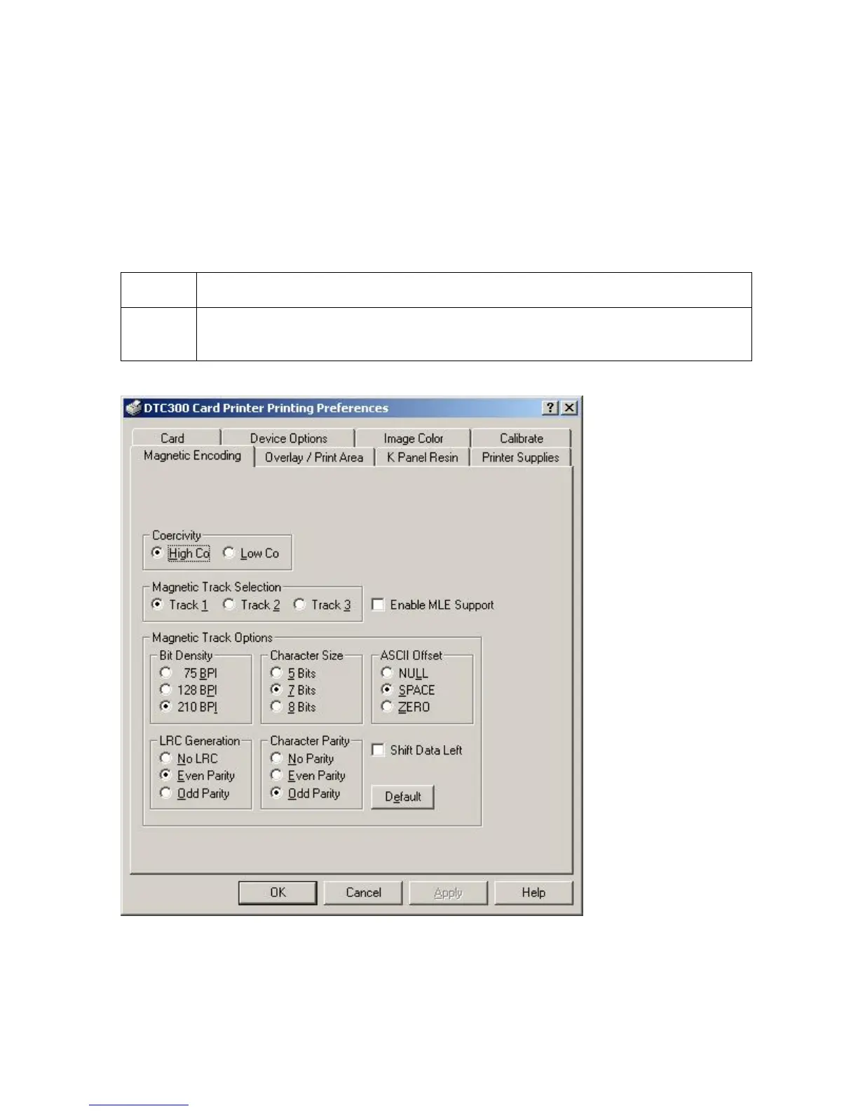 1 Select the Magnetic Encoding tab to display options for controlling the