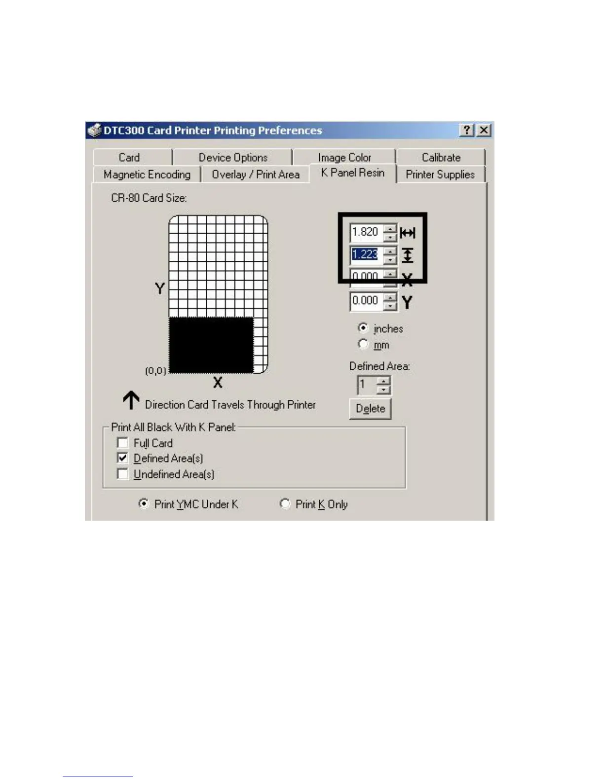 Fargo DTC300 - Selecting the Defined Area(S) Function (Continued)