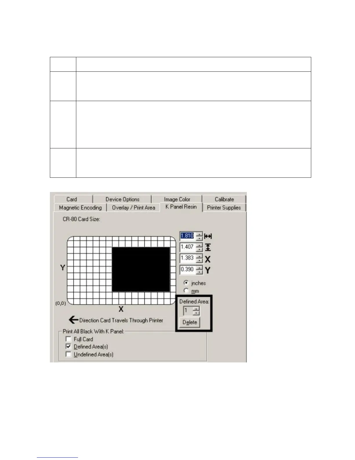 on the Delete button. (Note: If all areas are deleted, the K Panel Resin options