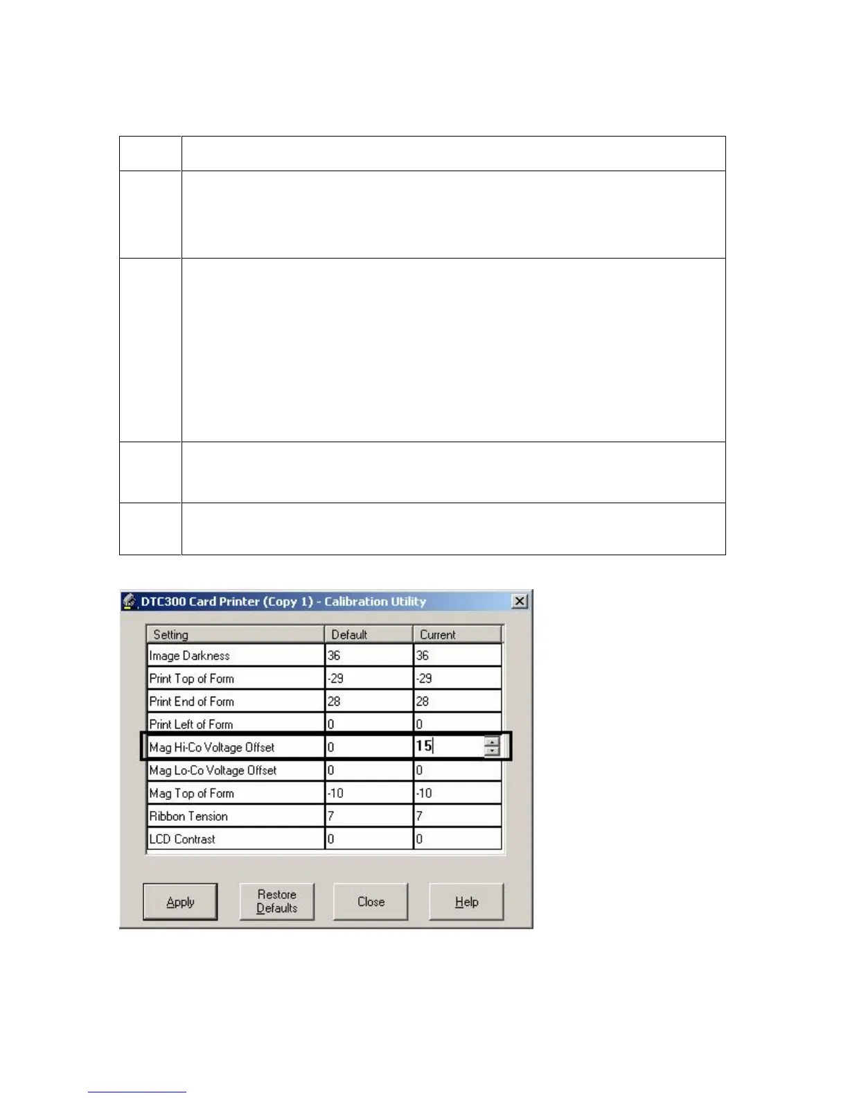 3 Change the Mag Hi-Co Voltage Offset value.