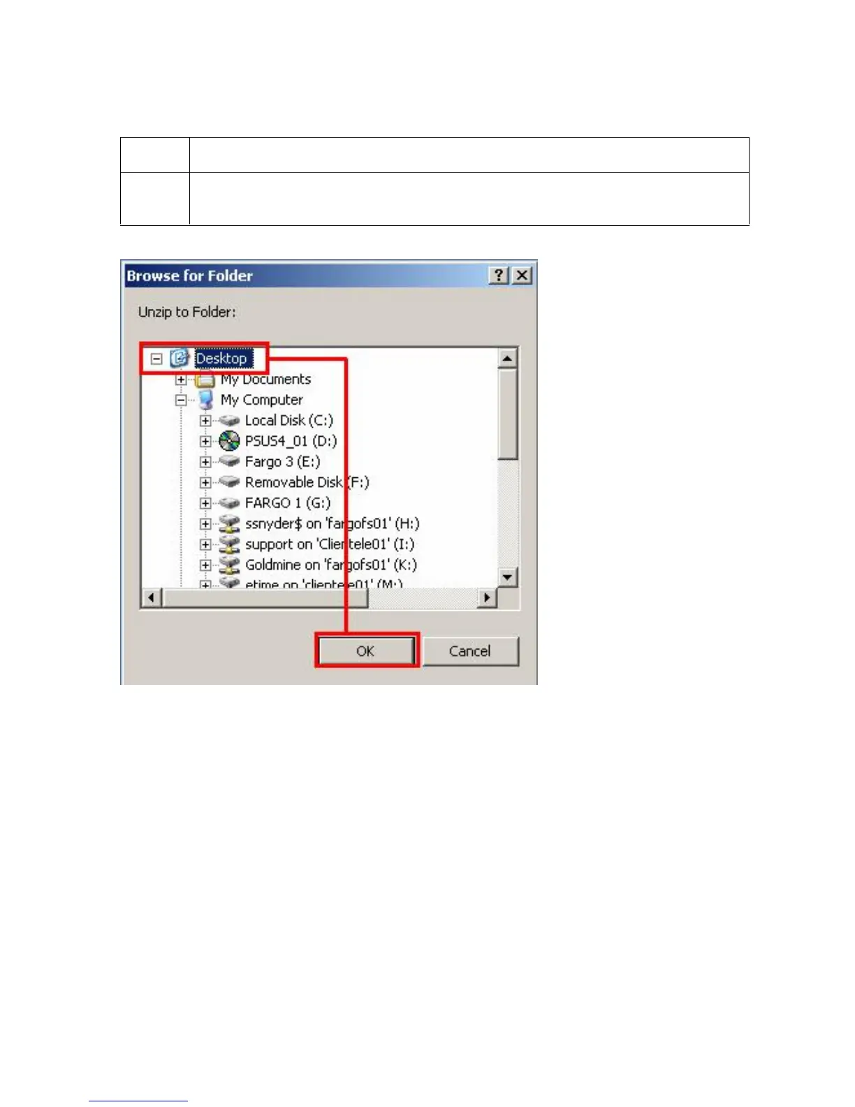Select the Desktop, then click on the OK button in the Browse for Folder dialog,