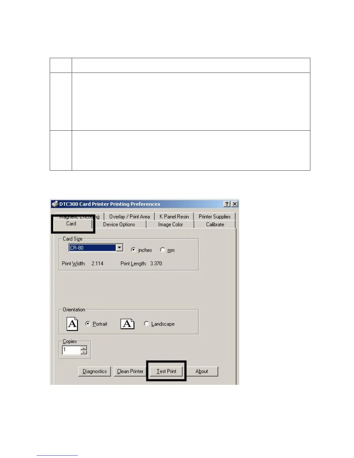 a. Select the Card tab, and then click on the Test Print button, as shown in