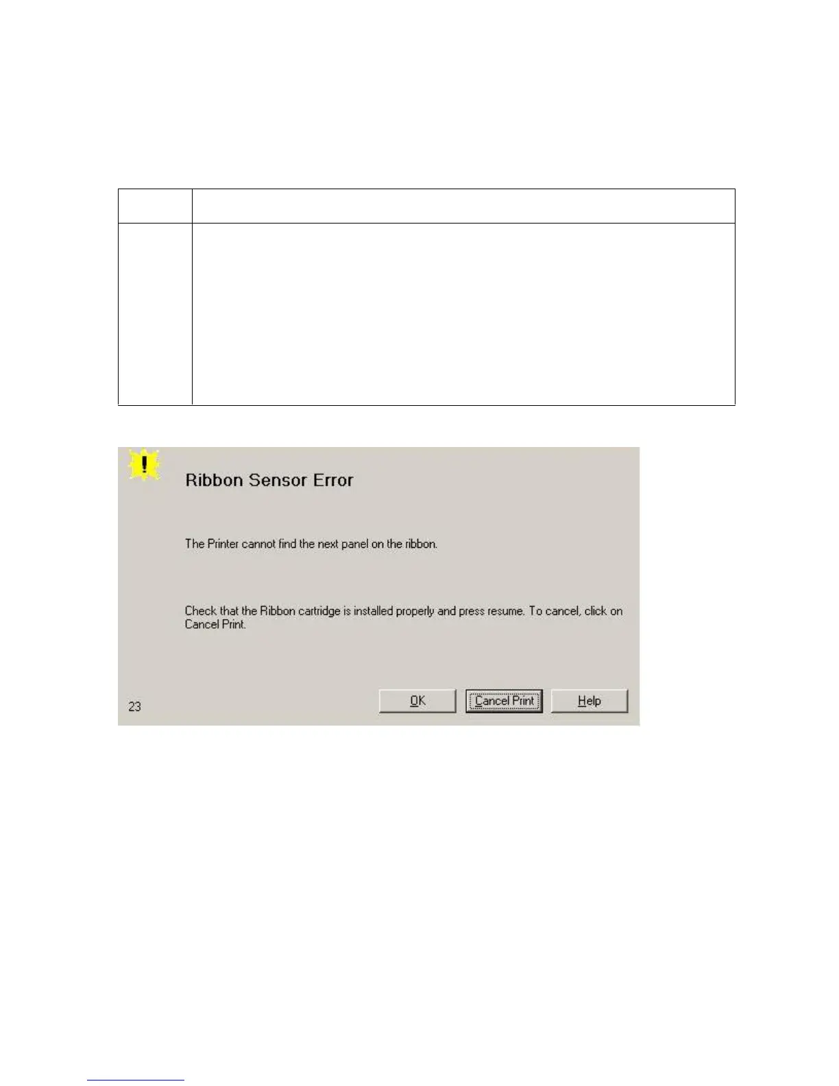 Printer Error State: The Printer cannot find the next panel on the Ribbon.