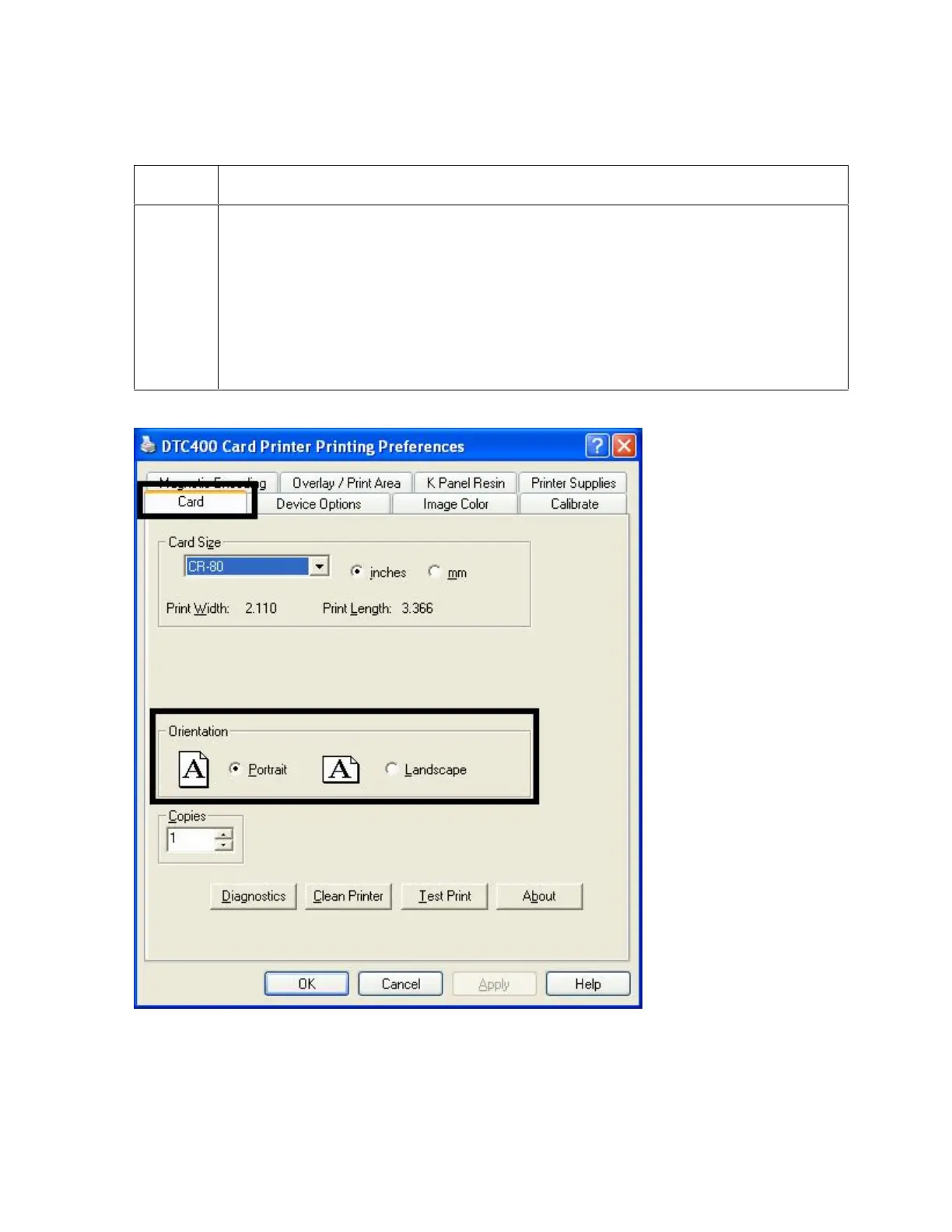 Select Landscape under Orientation to cause the card to print in a horizontal