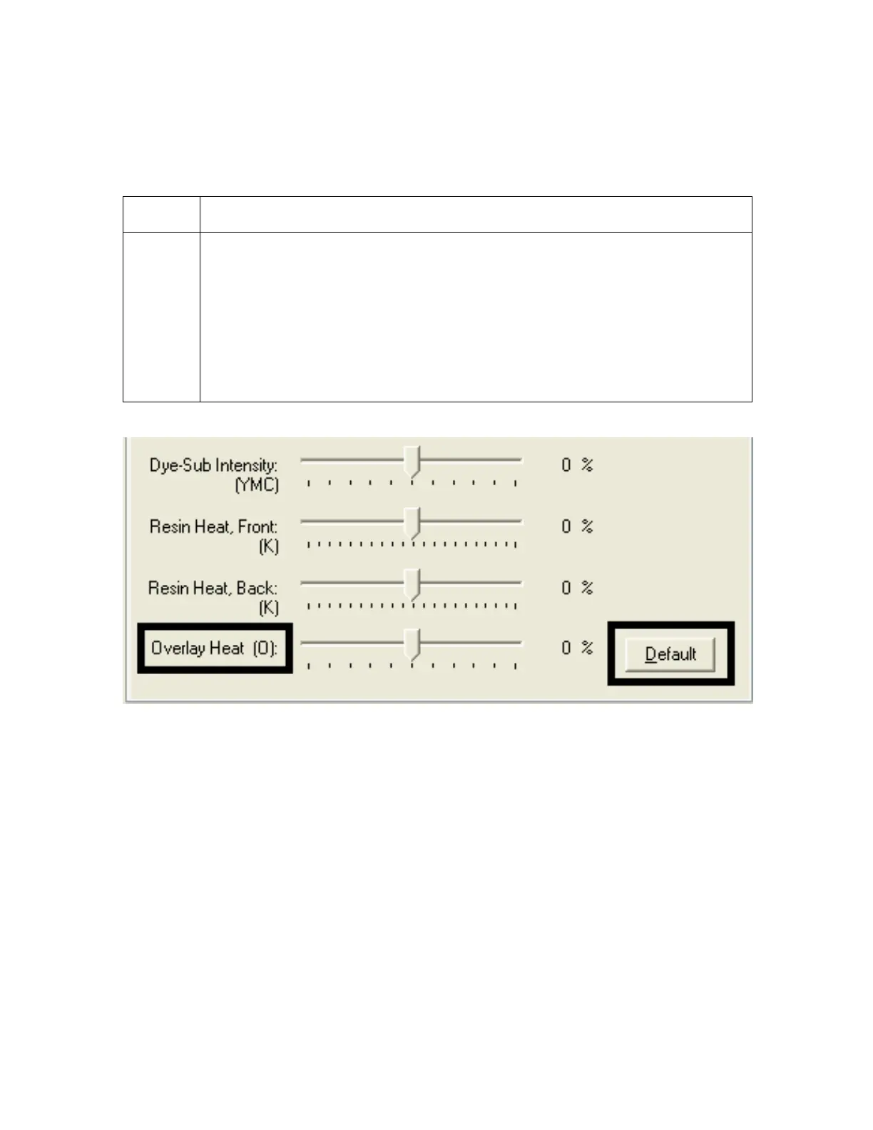 Use this option to control the amount of heat the Printer uses when printing with the overlay