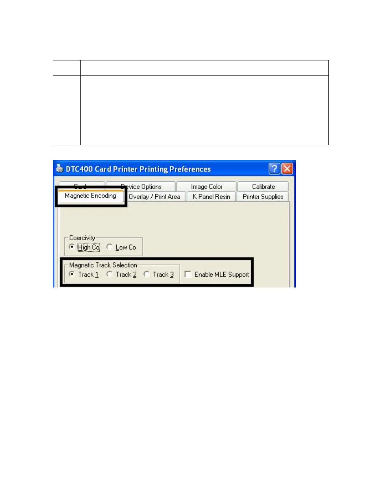 options for Track 1 whenever the Printer Driver setup screen is first opened.)