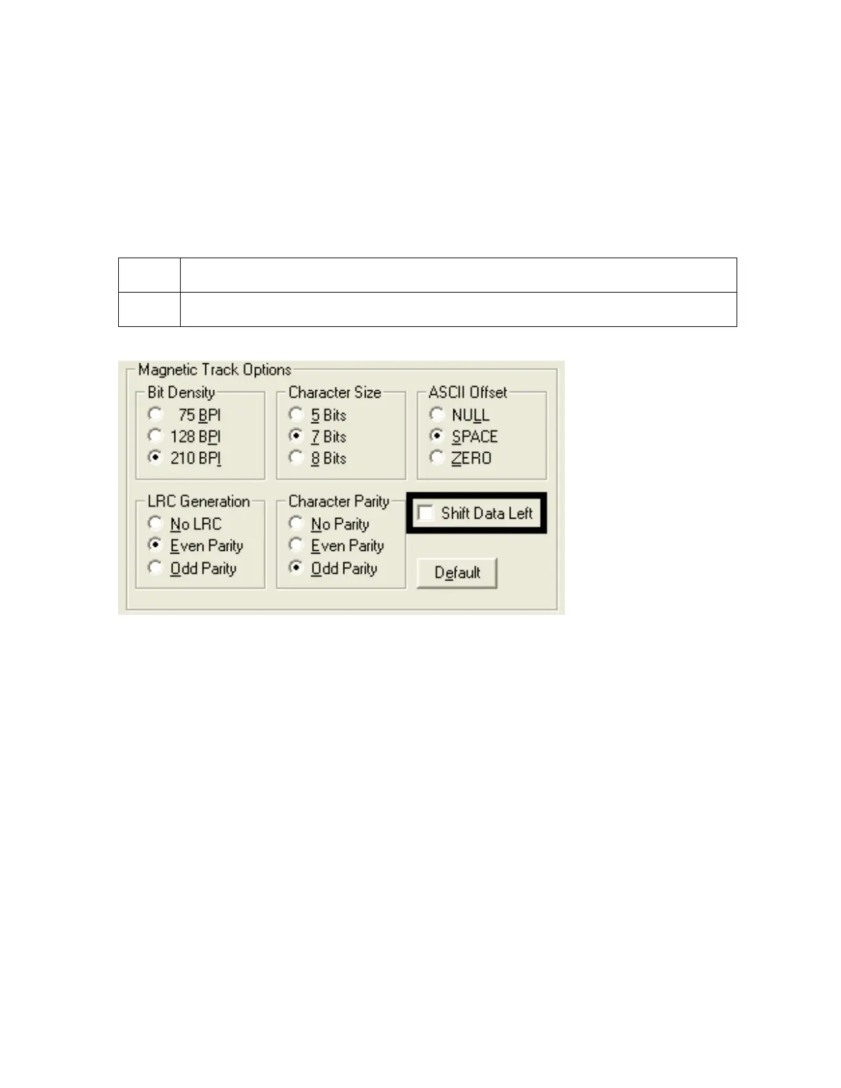 Use this option to shift the recorded magnetic data to the left-hand side of the card's