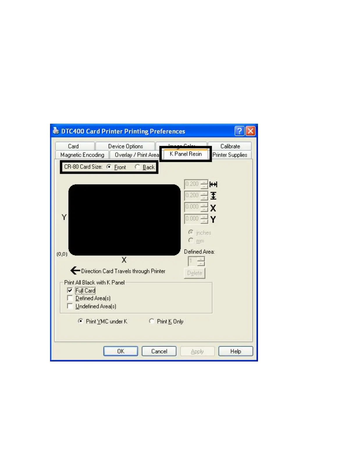 If printing with a resin-only Ribbon type all K Panel Resin options will be grayed out.