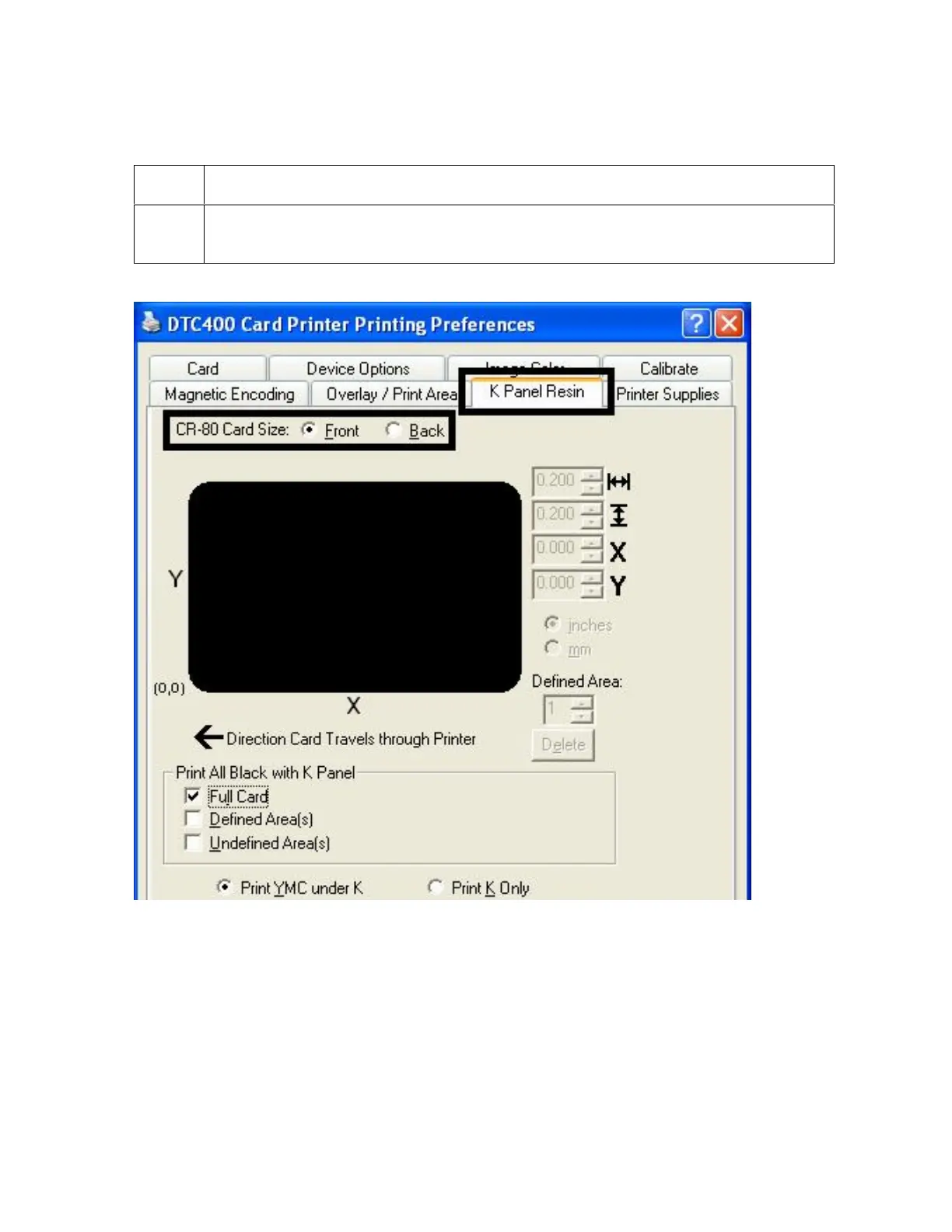 Select the Full Card option for the Printer Driver to print the resin black (K) panel