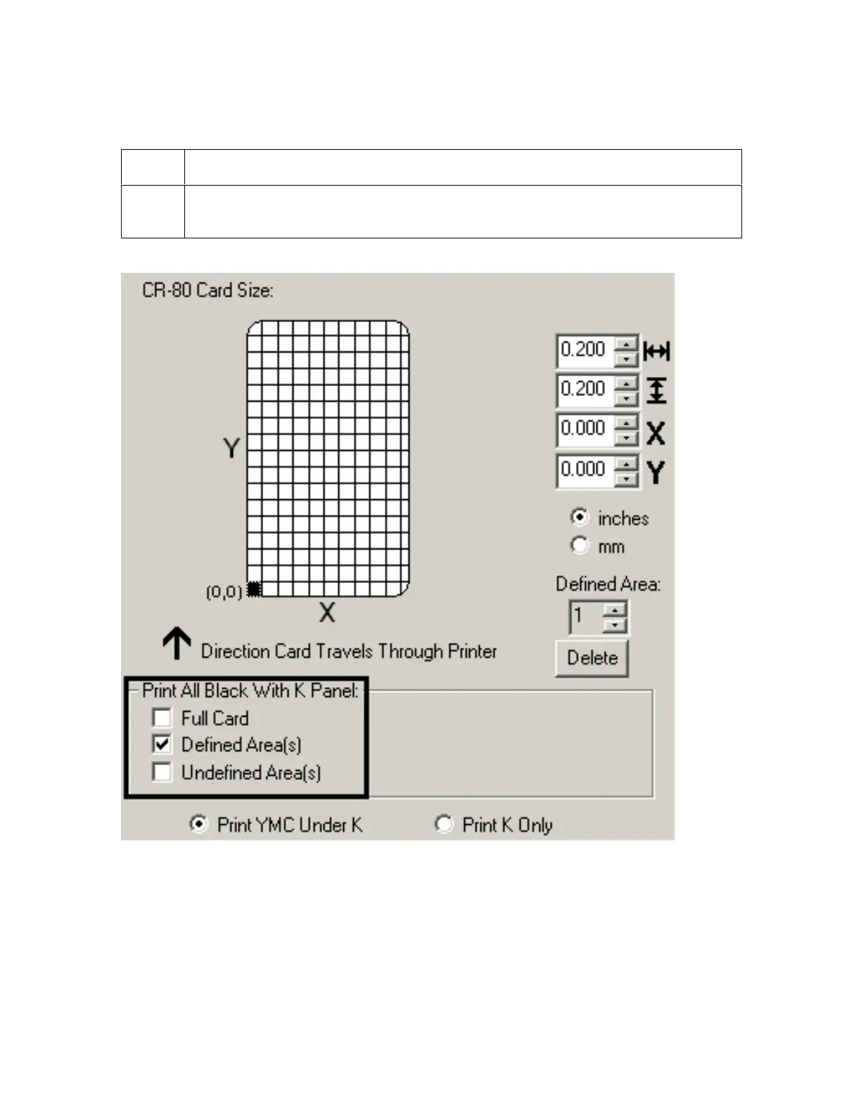 Selecting the Defined Area(s) option (Front and Back options)