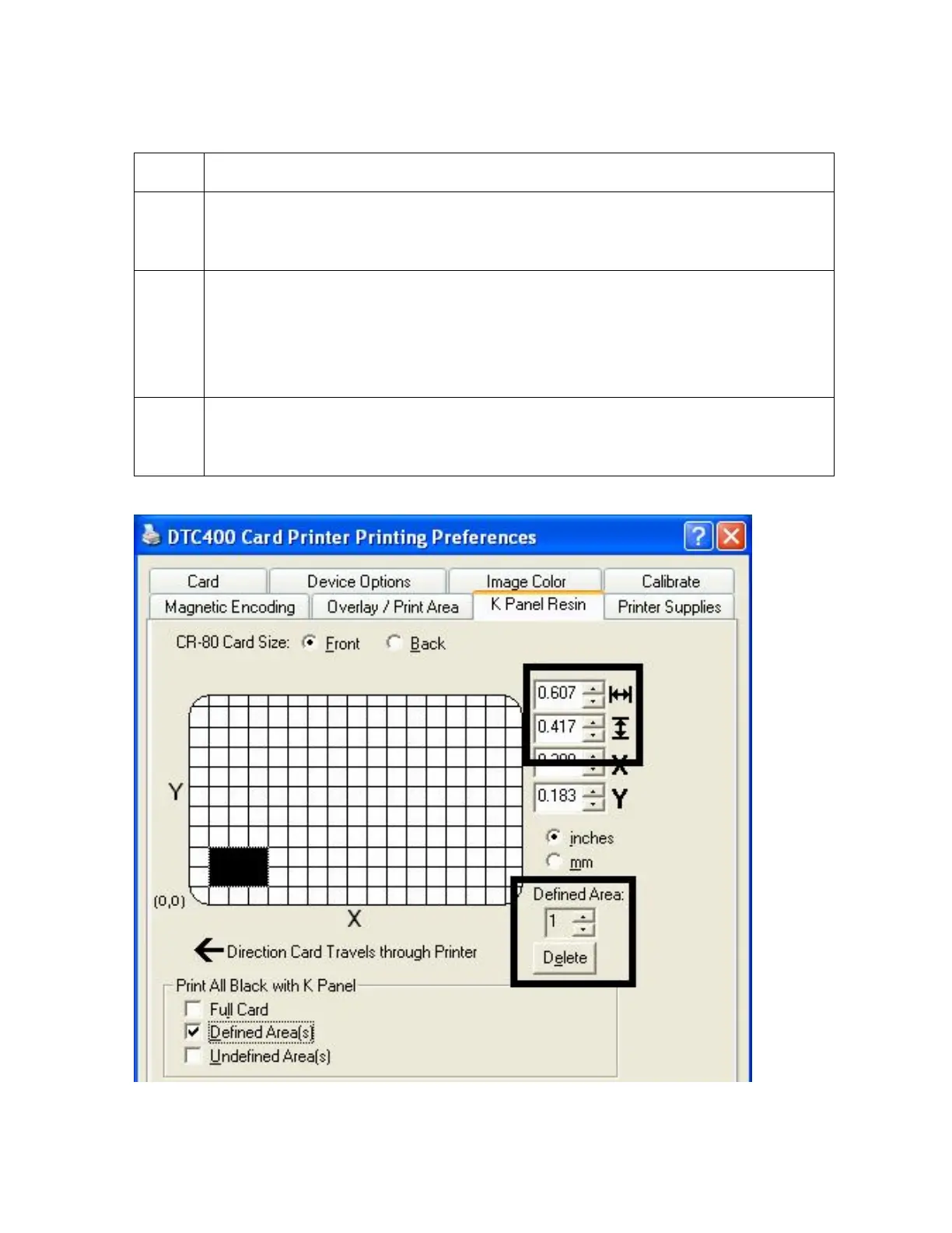 on the Delete button. (Note: If all areas are deleted, the K Panel Resin options