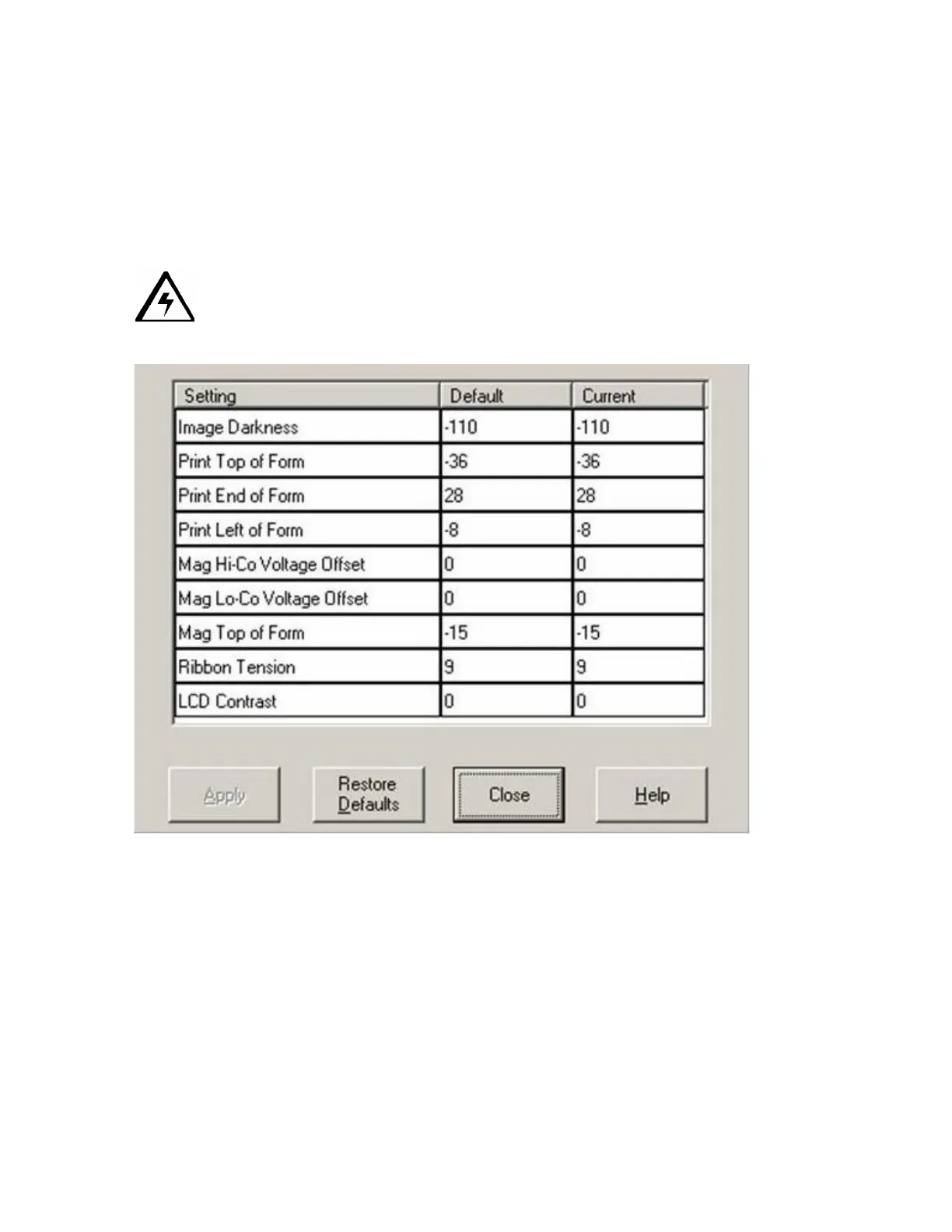 This dialog box is accessible only if the Printer is powered ON, it is in Ready Mode and it is
