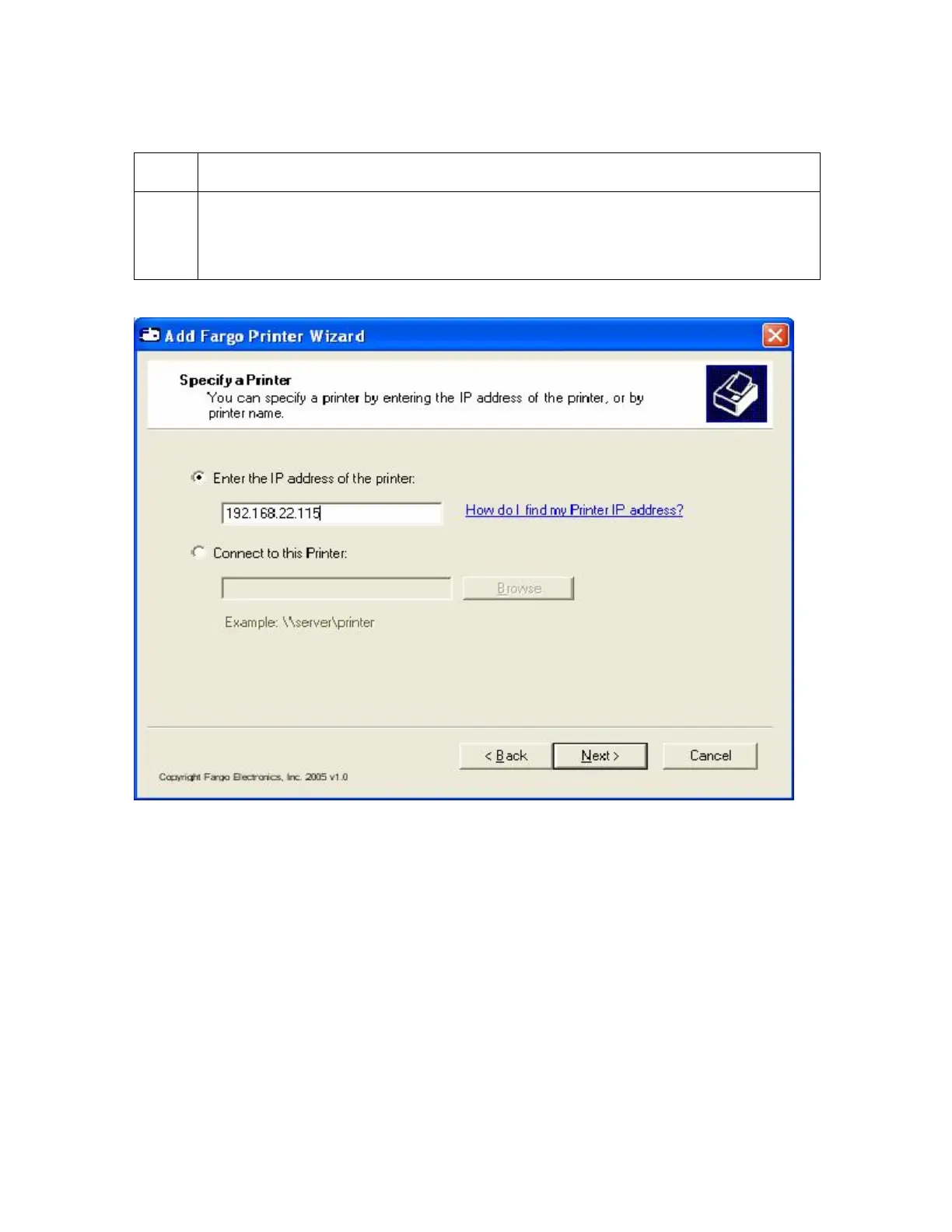 10 a. Enter the IP address of the printer. See Finding the IP Address of the
