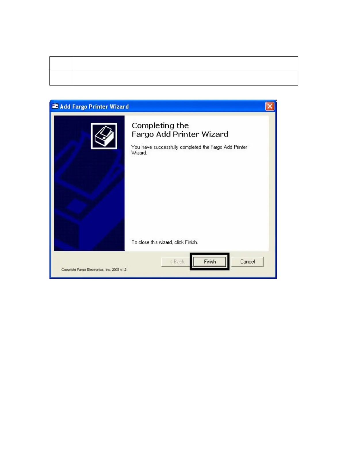 Click on the Finish button to complete the Fargo Add Printer Wizard.