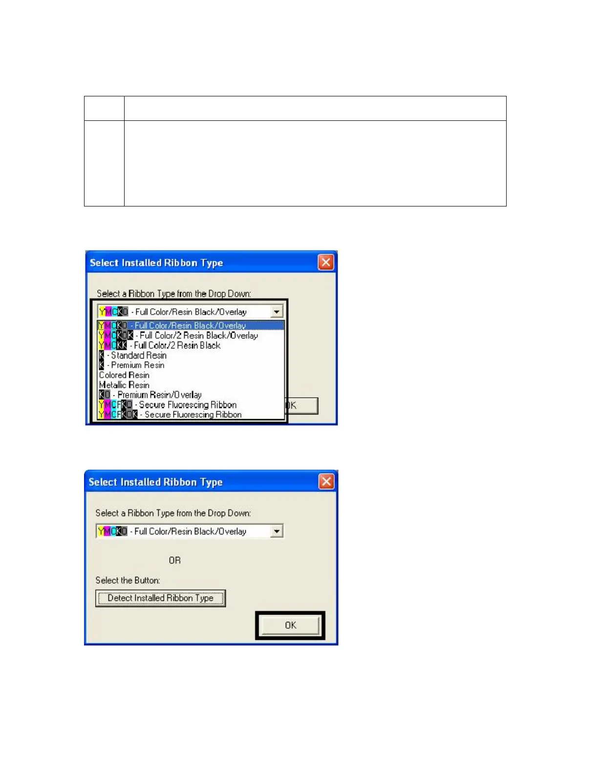 If the Ribbon Type is not known, select the Auto Ribbon Select button. See
