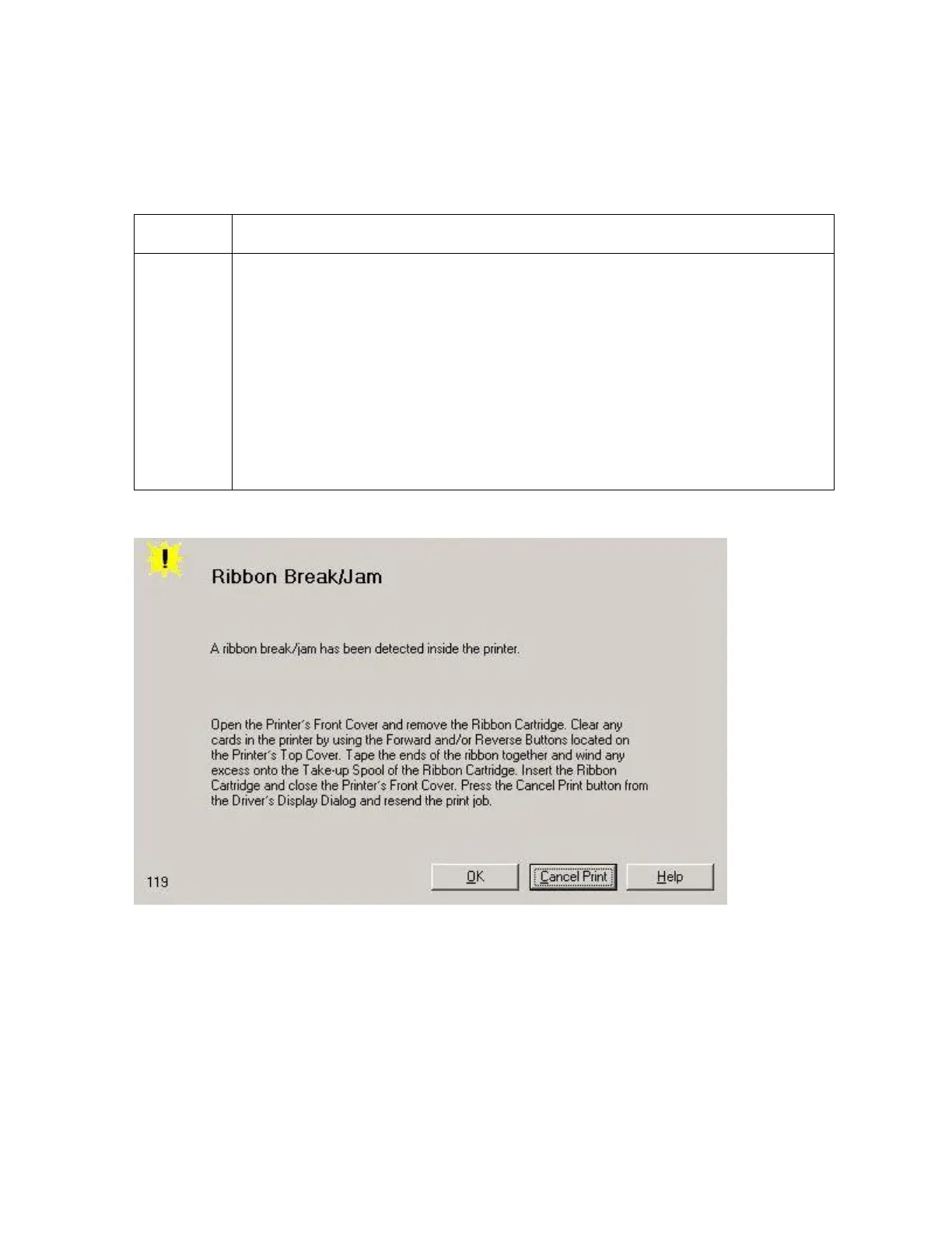 Driver Monitor Error Display: Ribbon BreakJam