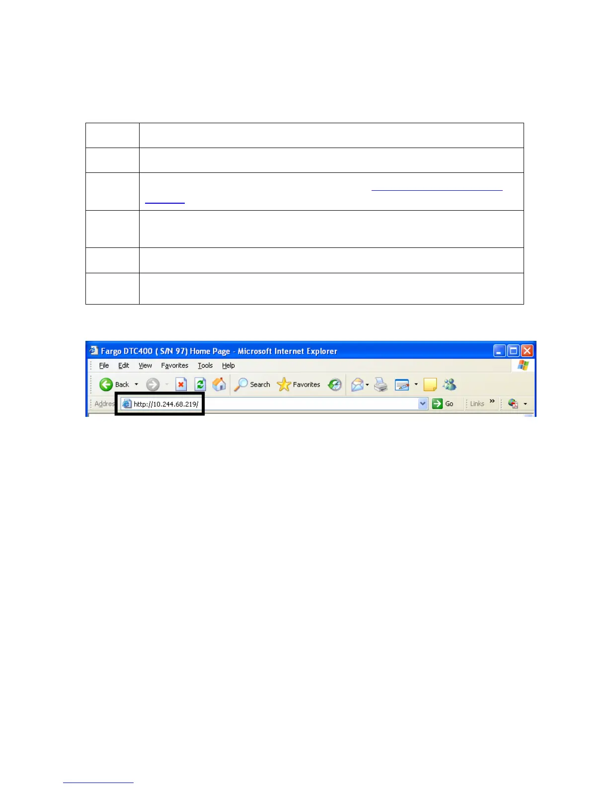 the browser. (Note: The IP address will change for your printer installation.)