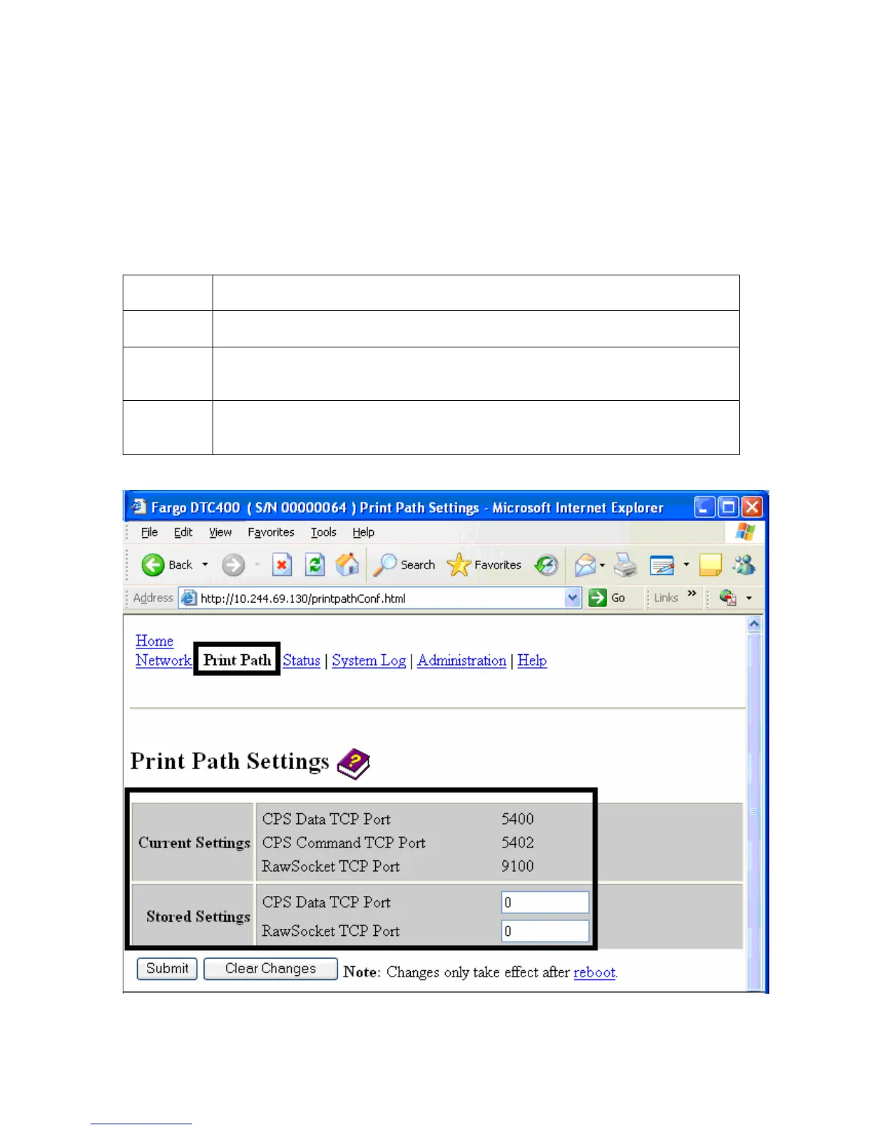 The purpose of the Print Path page is to allow the User to view or change the TCP port