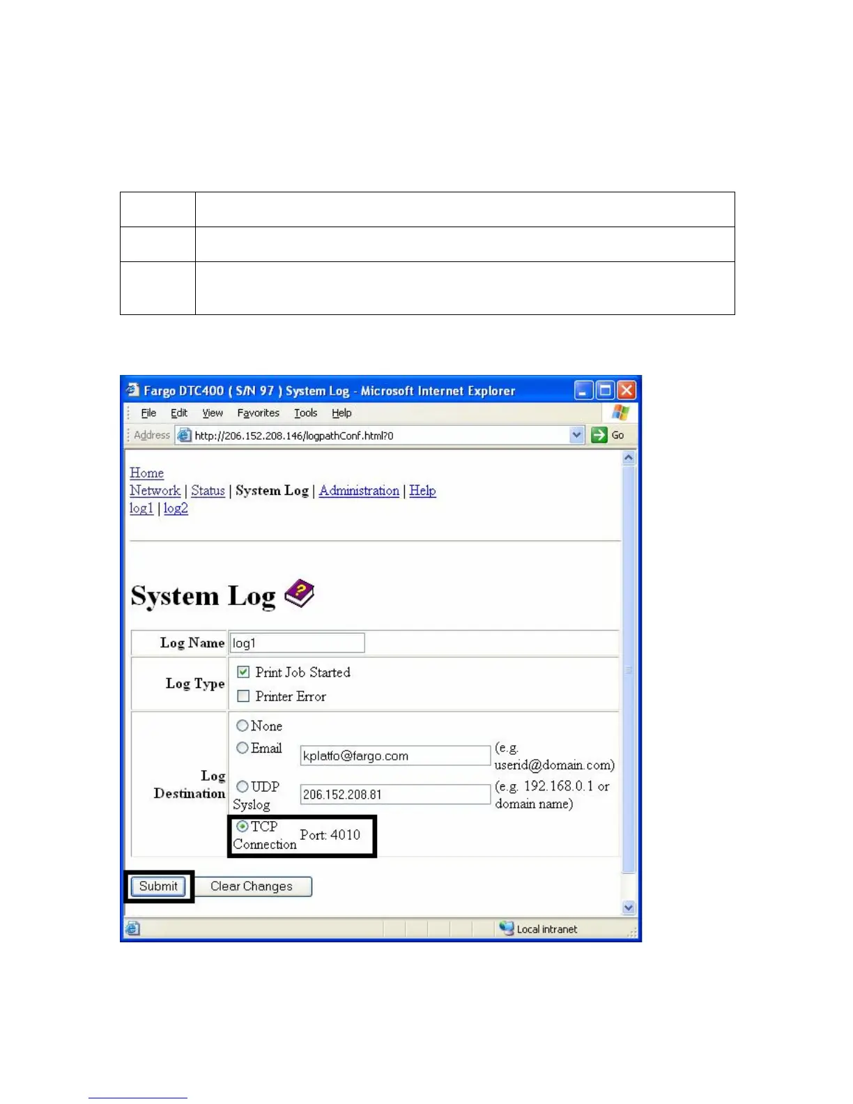 Follow this procedure to send logging messages to a pre-existing IP connection made on the