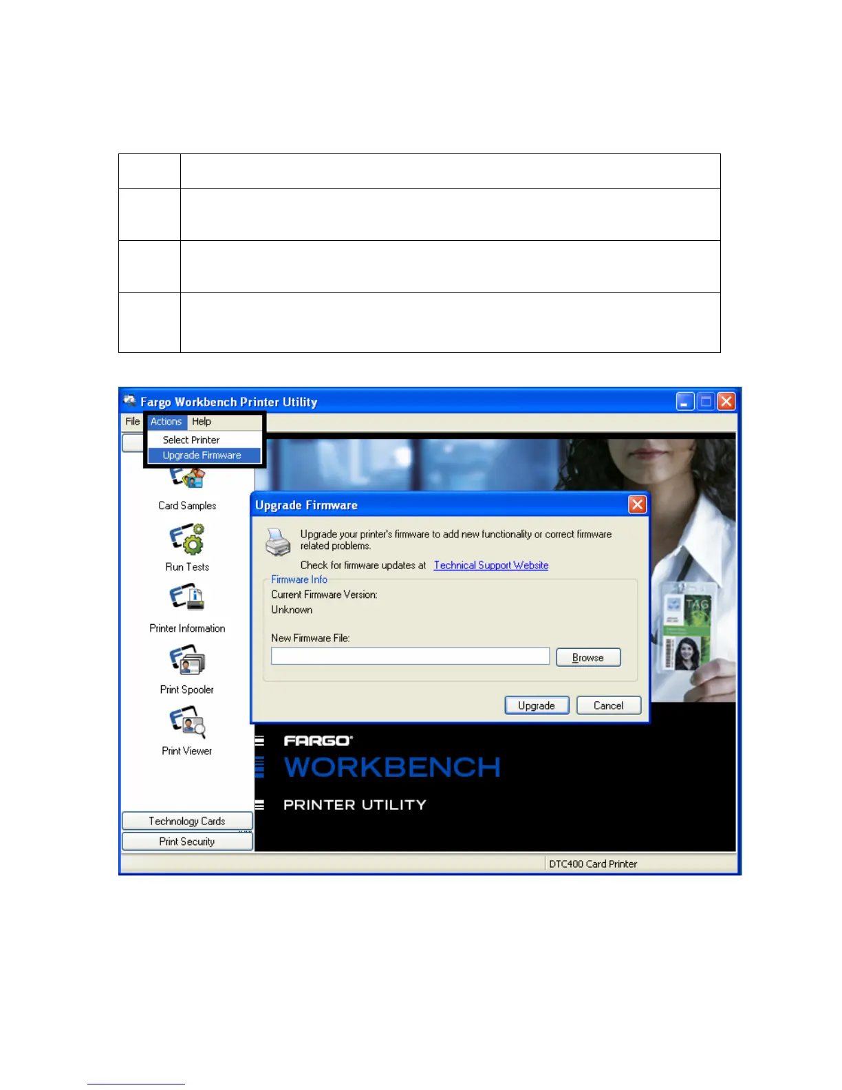 Upgrading the Main Firmware with the Fargo Workbench Printer Utility