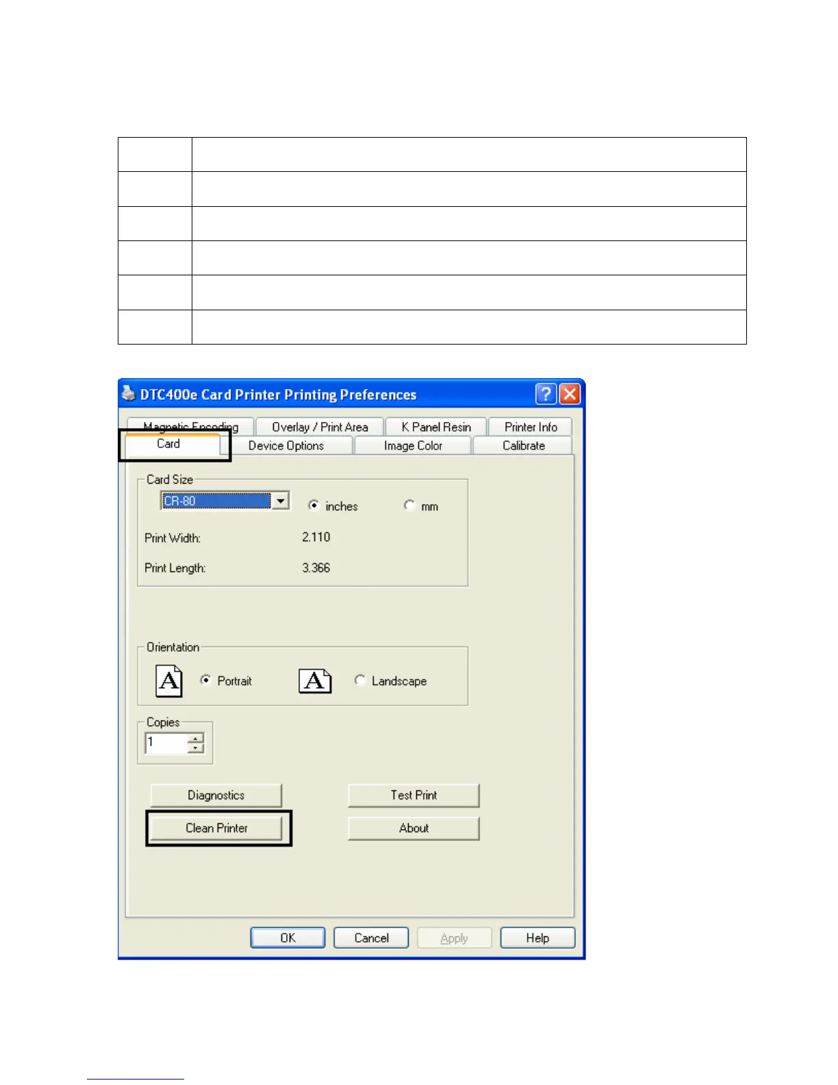 Using the Clean Printer Option