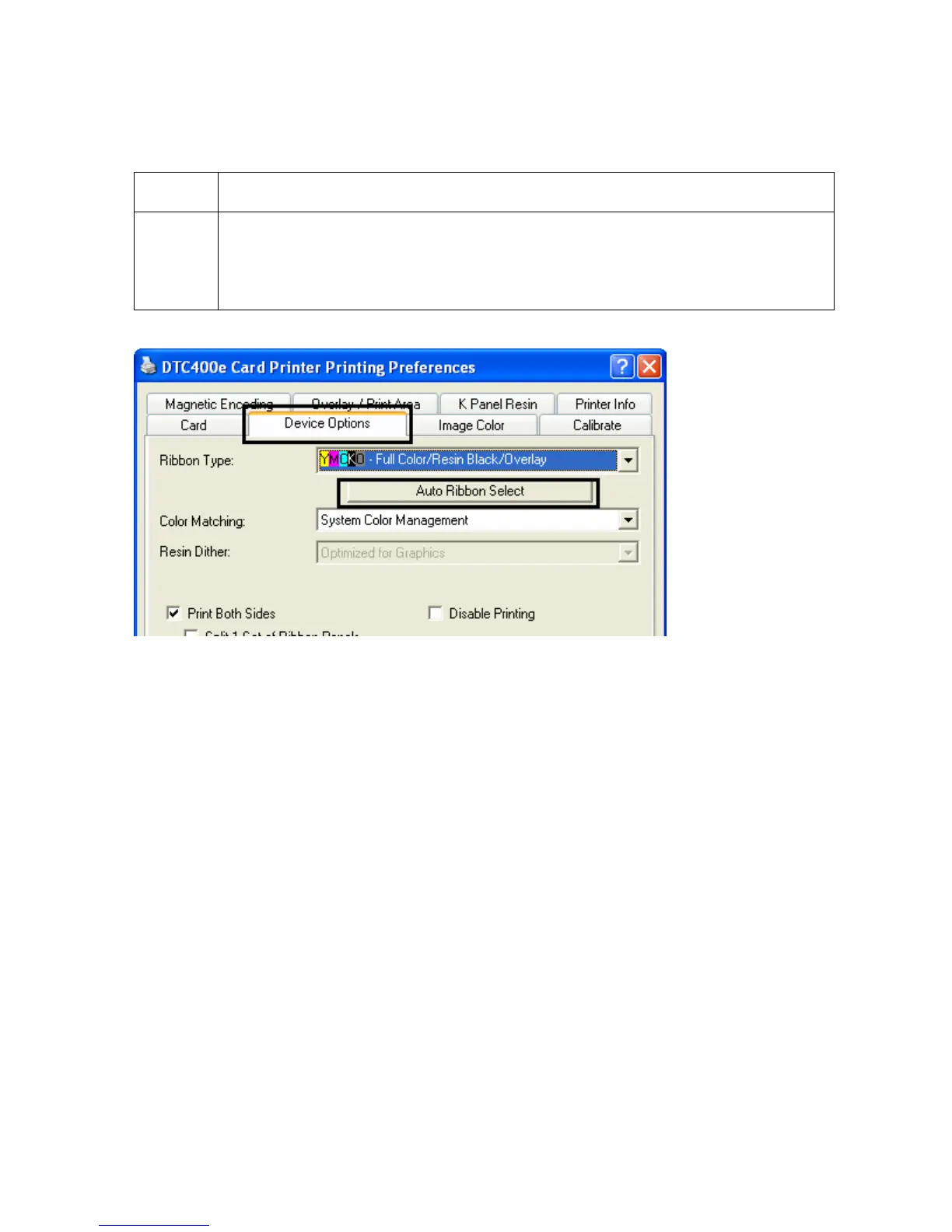 Ribbon installed in the Printer. (Note: The Printer Driver will change the Ribbon