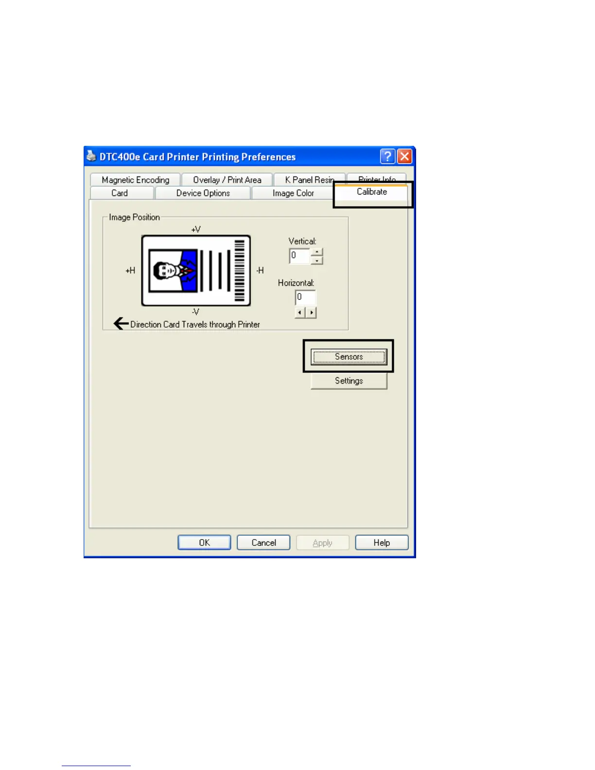 Use the Sensors button to bring up a separate dialog box for calibrating the Printer's Ribbon