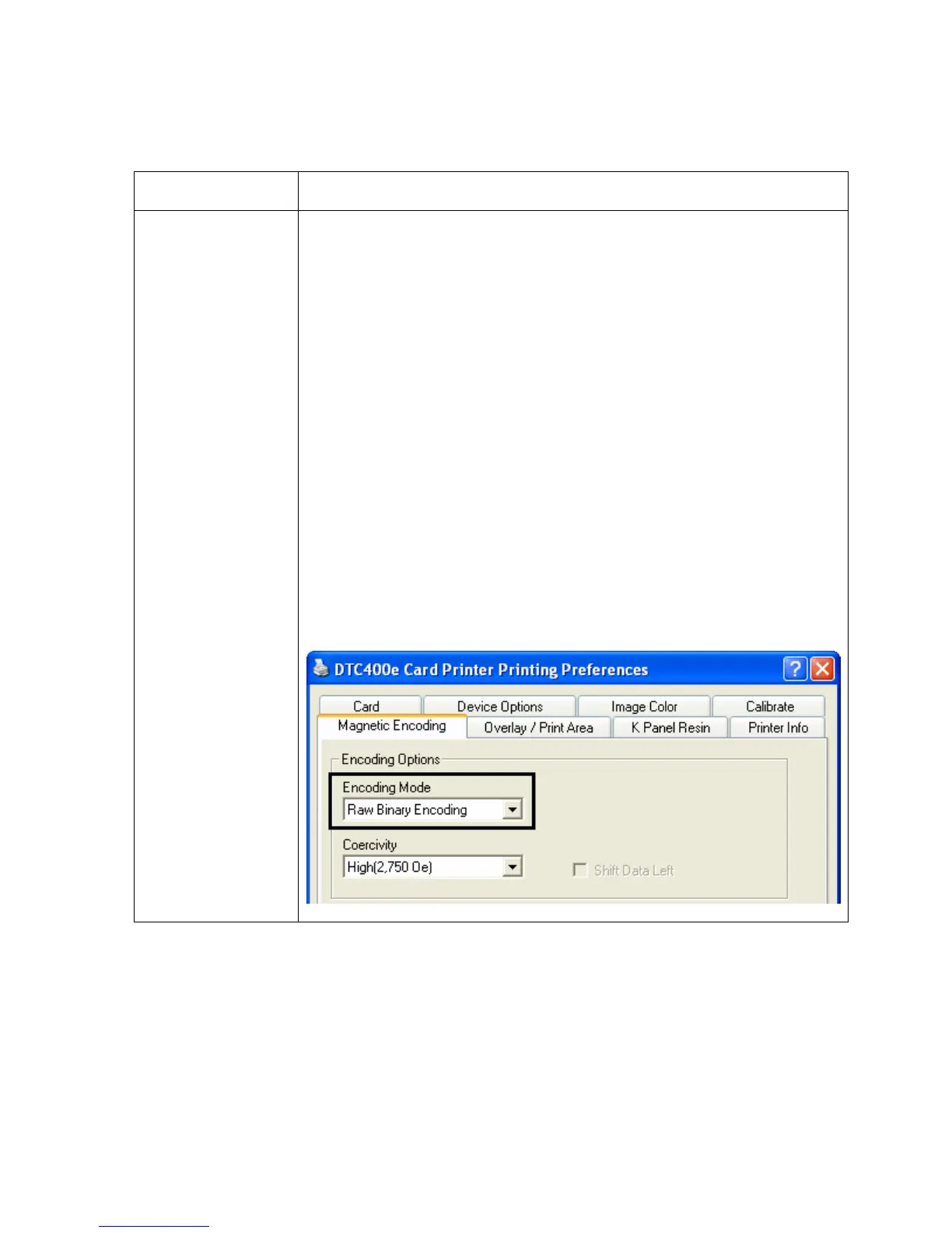 The User can select Raw Magnetic Encoding from the Driver.