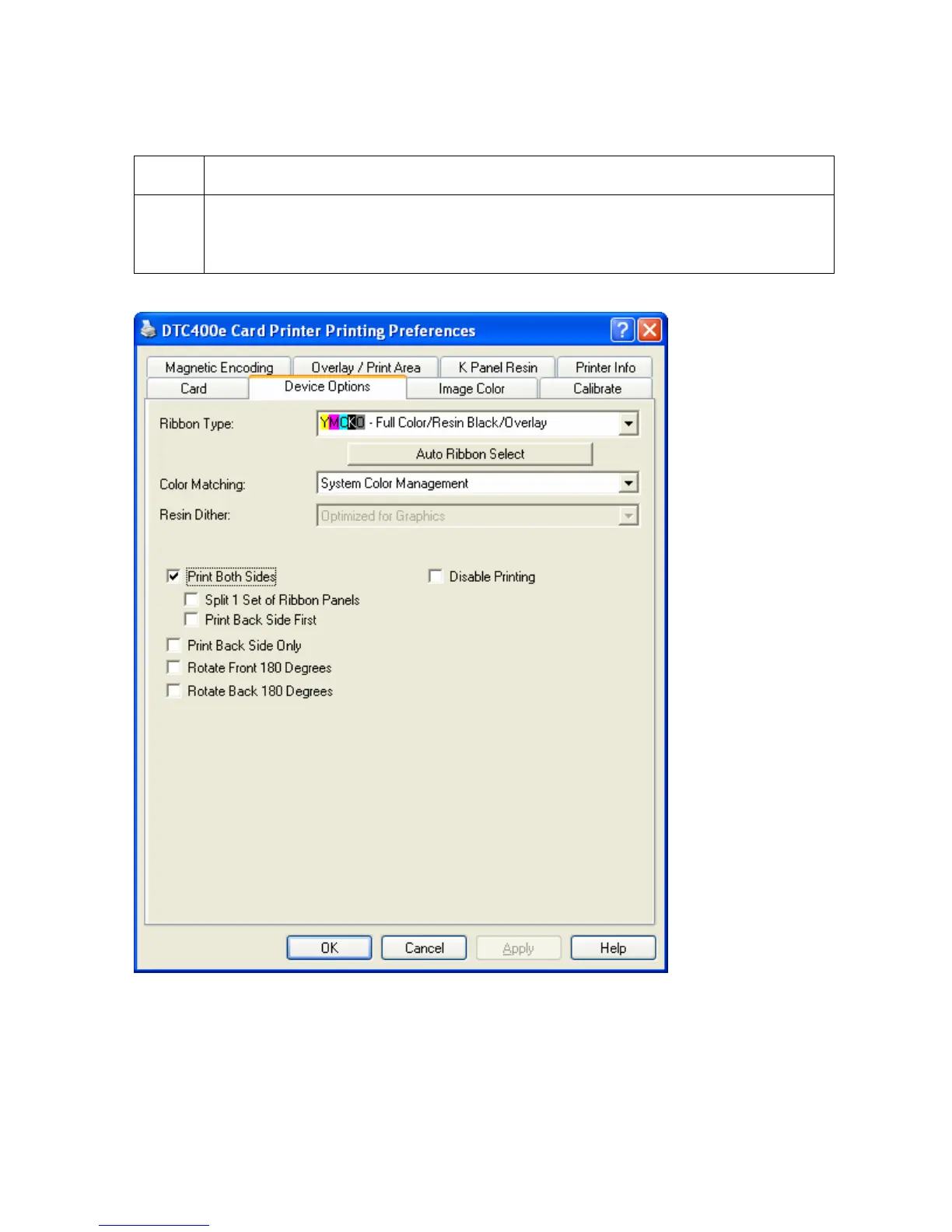 1 Select Print Both Sides under the Device Options tab to enable the Back option