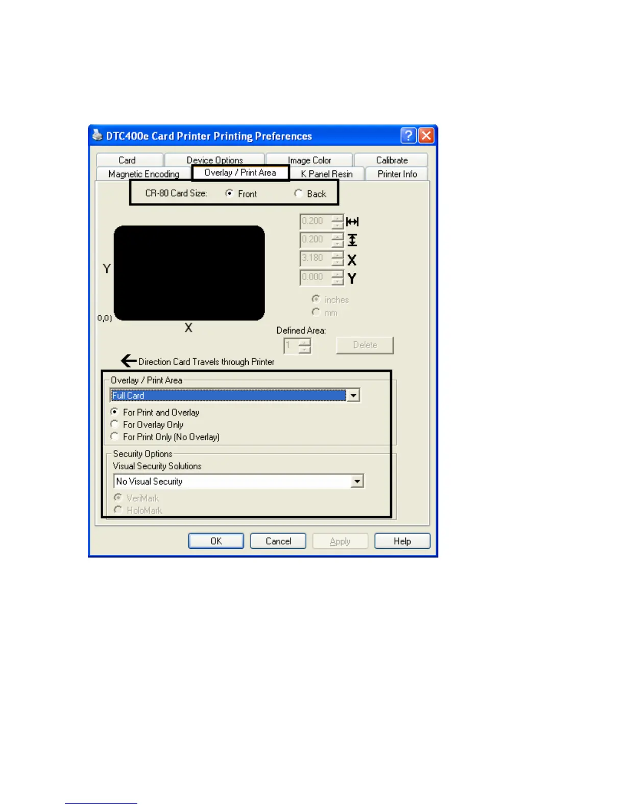 Using the Overlay / Print Area dropdown menu (continued)