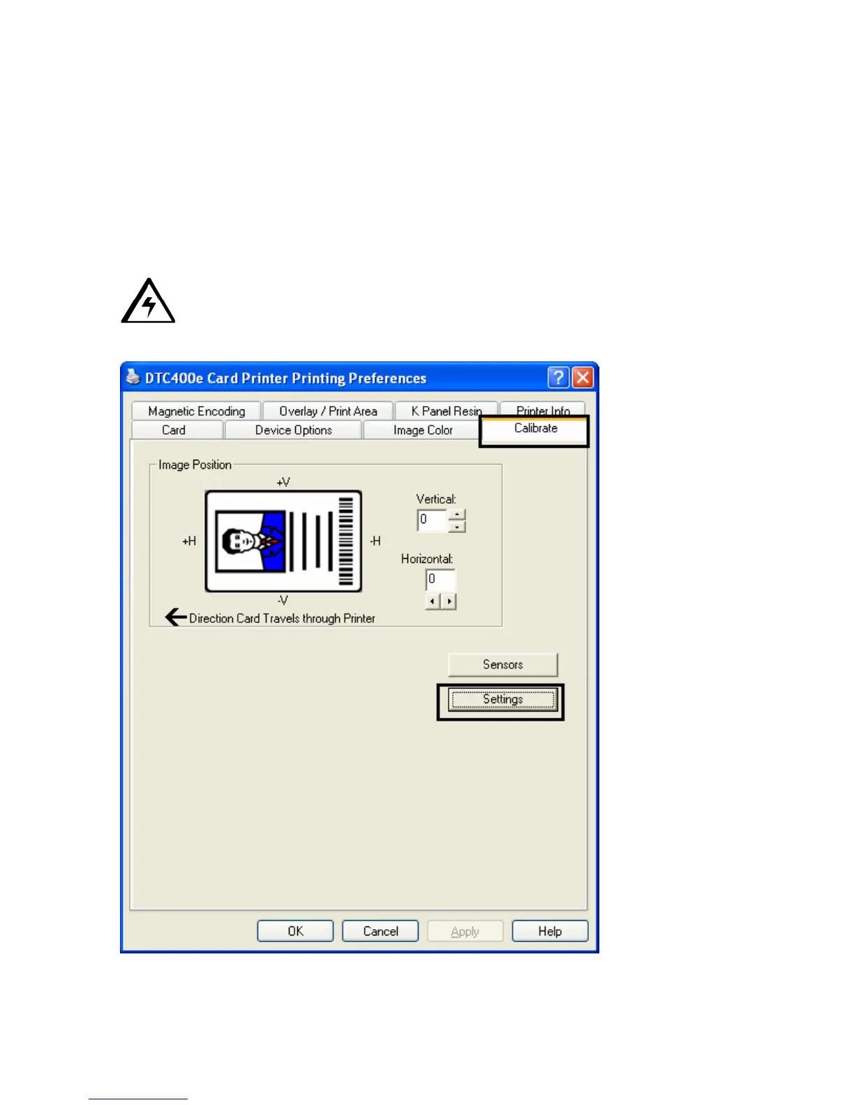 This dialog box is accessible only if the Printer is powered ON, it is in Ready Mode and it is