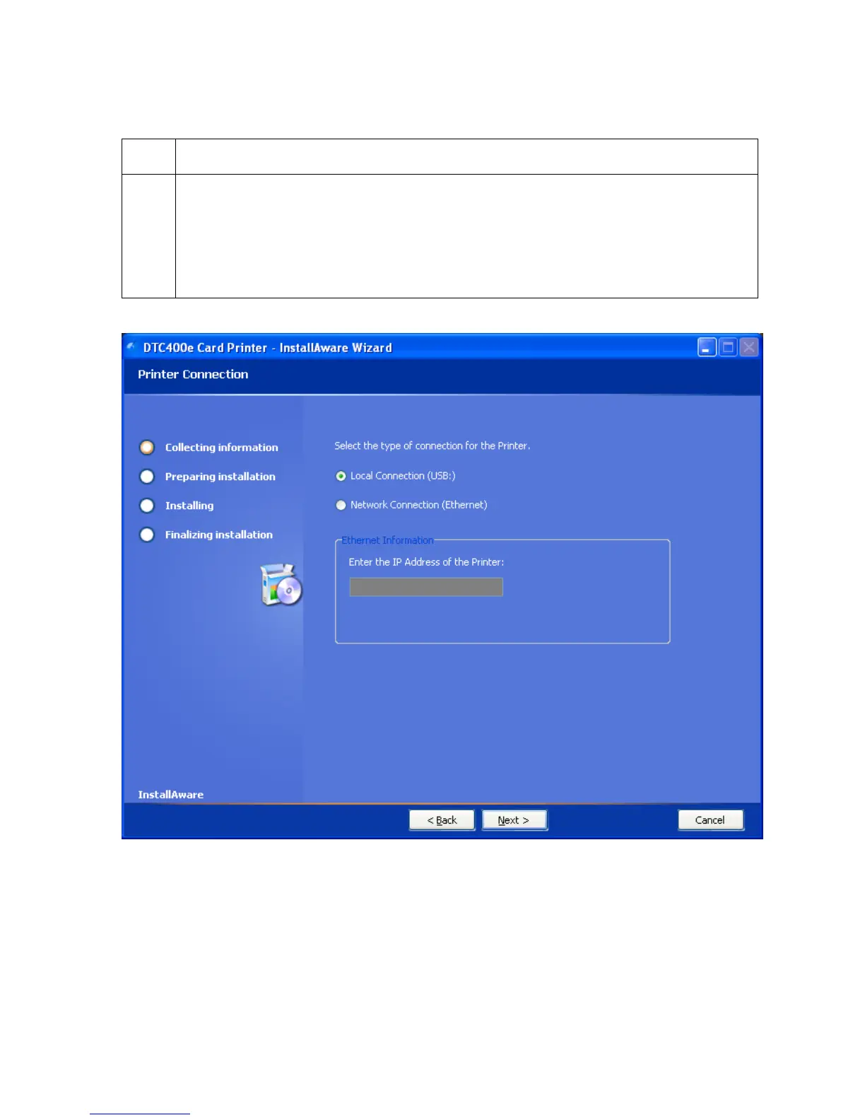 port and enter the Printer’s IP address. Click Next to continue with the installation.