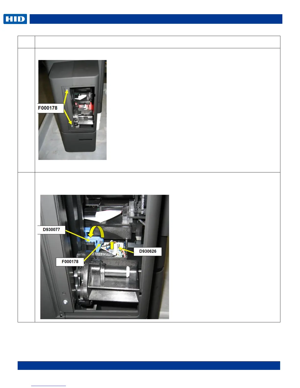Remove 1 screw (F000178) from the blue retainer clip (D930077).