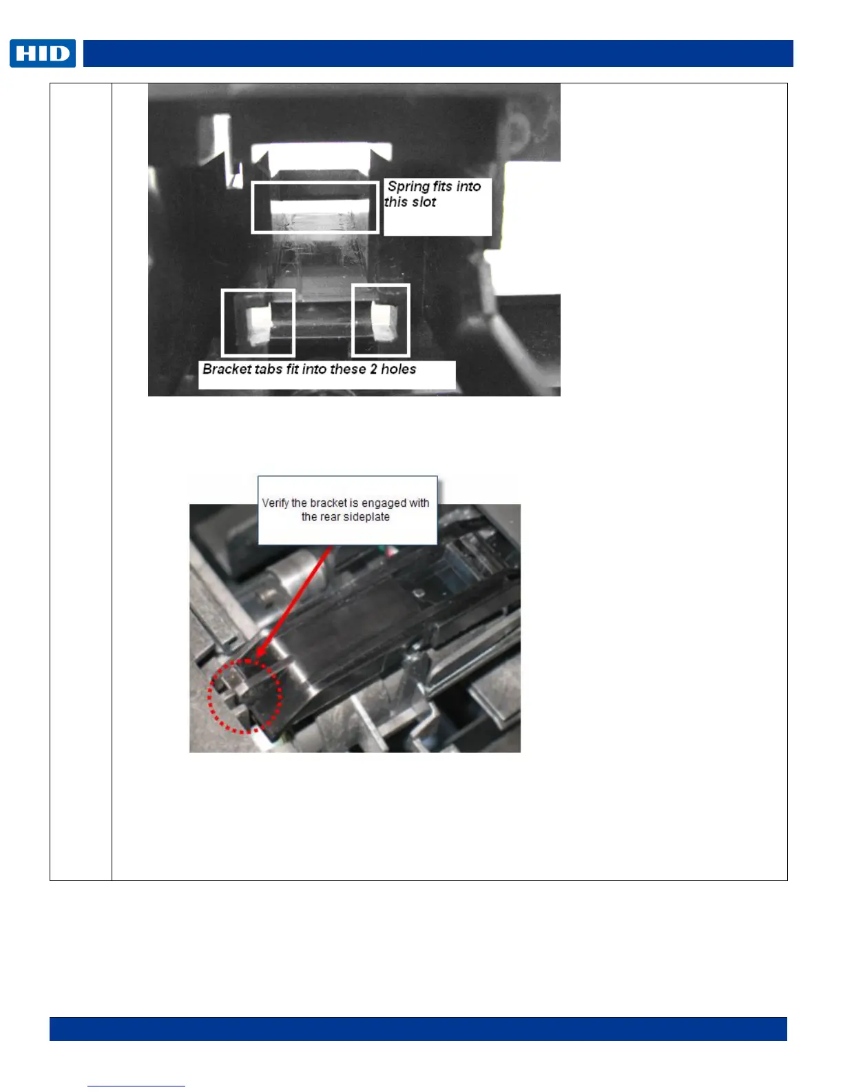 d. Tilt the spring upward and fit in to the slot provided. Some force is needed to snap the spring