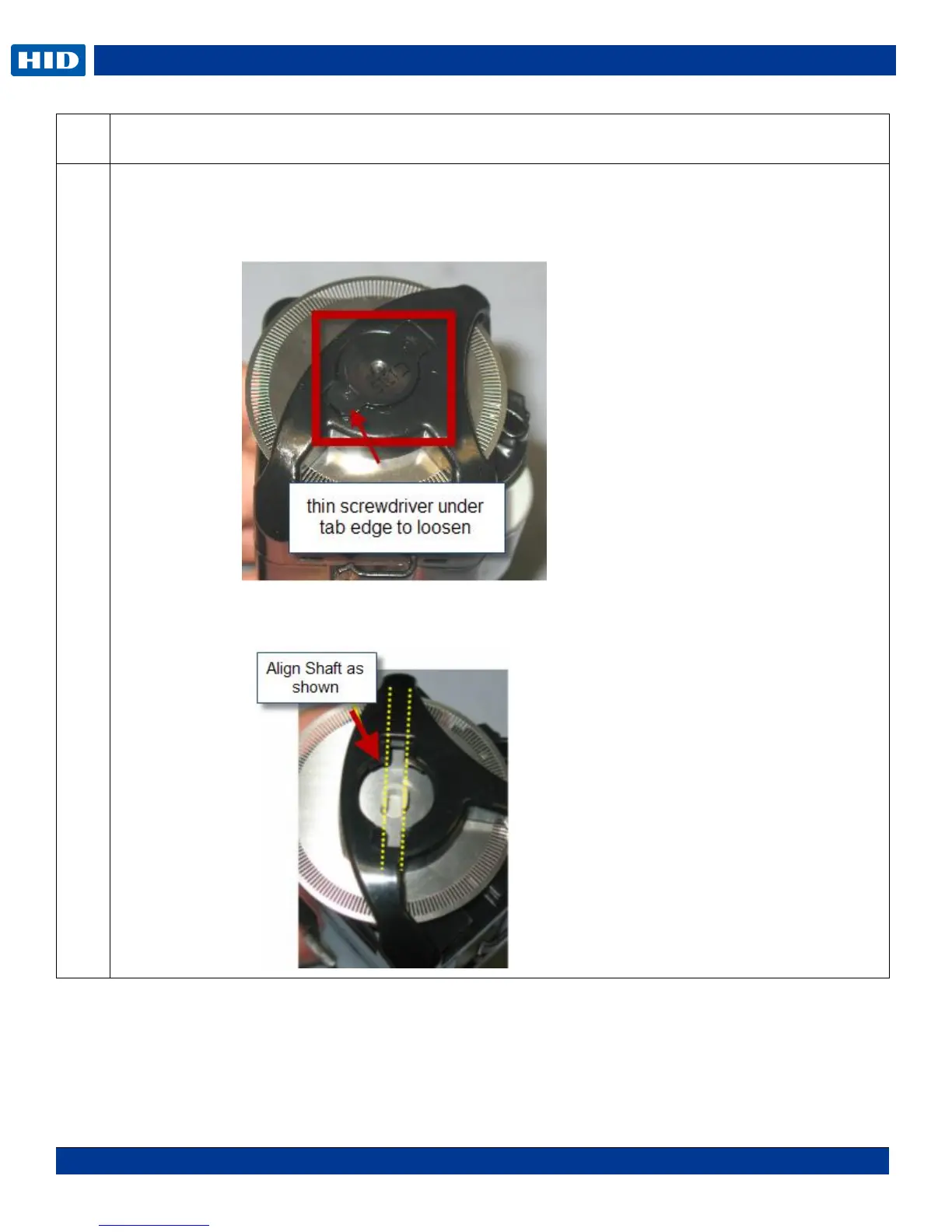 Verify the gray shaft is pushed up to hold the encoder wheel in place.