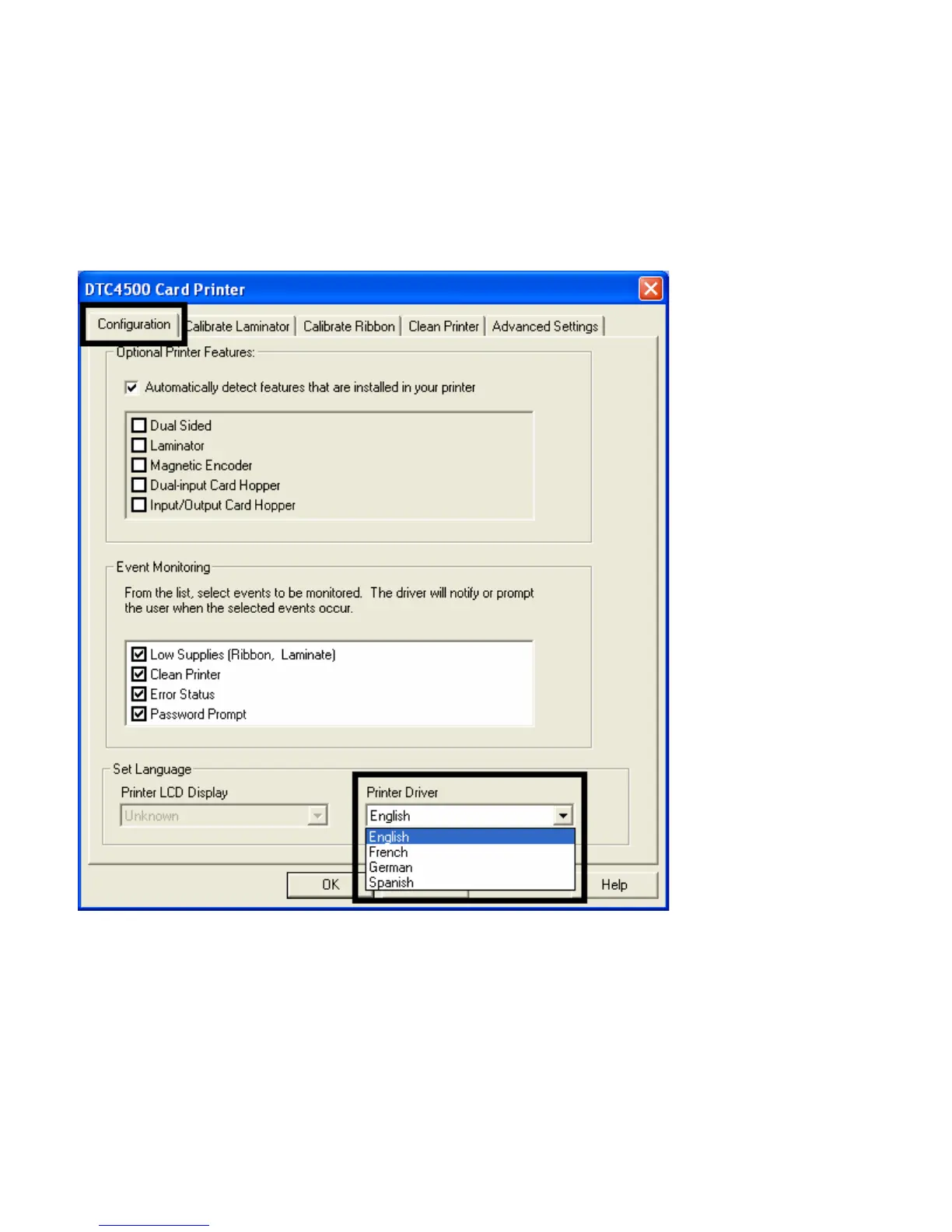 Printer Driver language and Printer LCD Display language.
